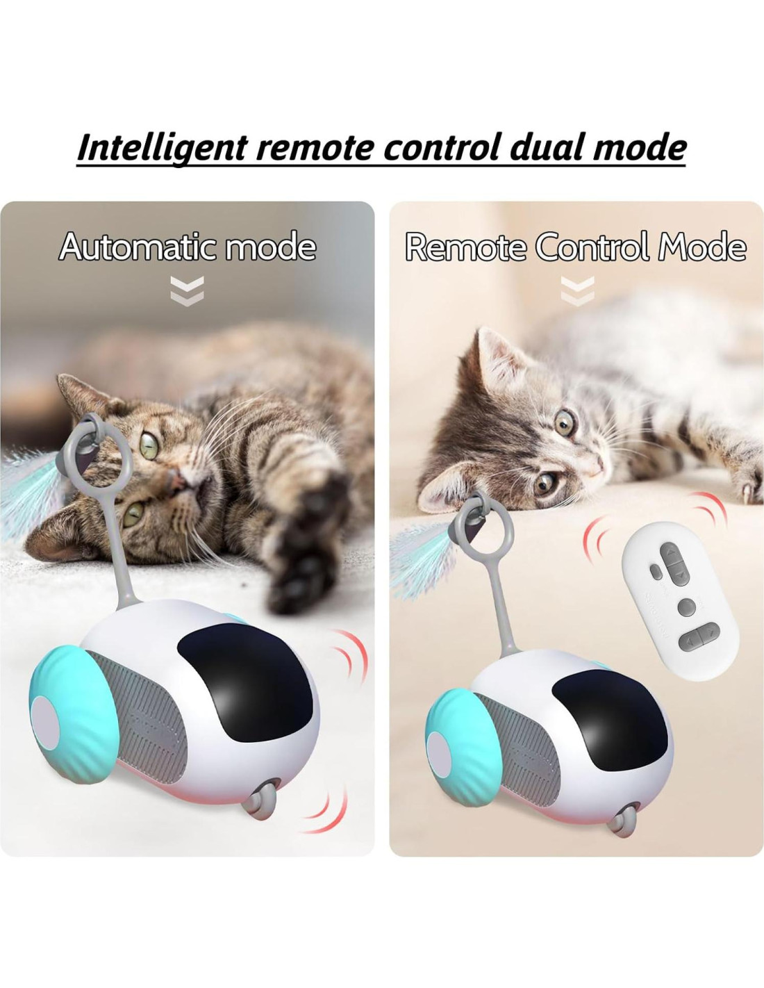 - Nueva versión Modos Interactivos Inteligentes y de Control Remoto: La velocidad del juguete de ratón para gatos se puede ajustar a través del control remoto, proporcionando configuraciones rápidas y lentas para adaptarse al estado de ánimo y nivel de actividad del gato. Este juguete inteligente con control remoto ofrece dos modos para elegir. En el modo interactivo inteligente, el juguete se moverá, temblará o rebotará automáticamente, proporcionando entretenimiento sin fin para tu amigo peludo sin necesidad de control por aplicación. En el modo de control remoto, puedes usar el control remoto para mejorar la diversión e interactuar con tu gato.