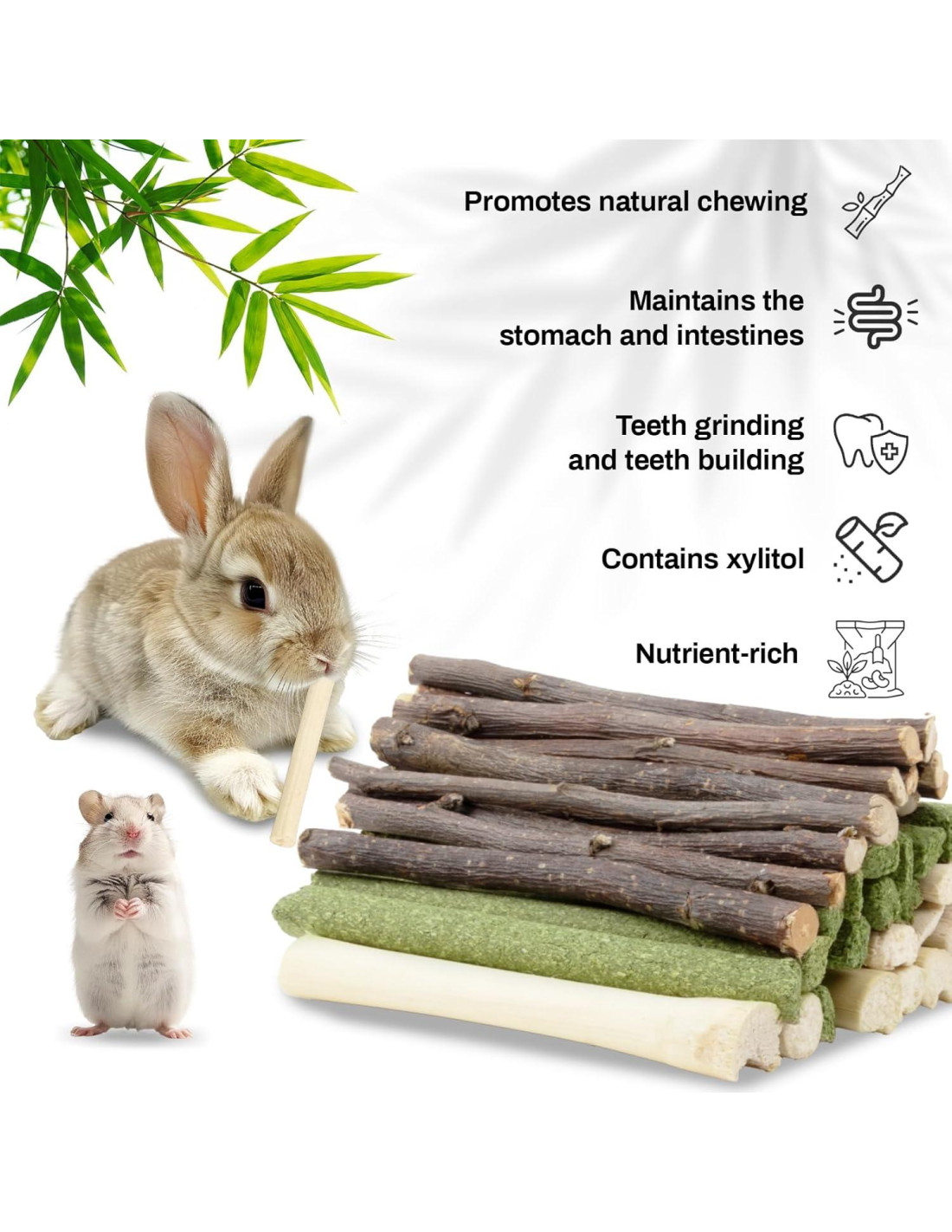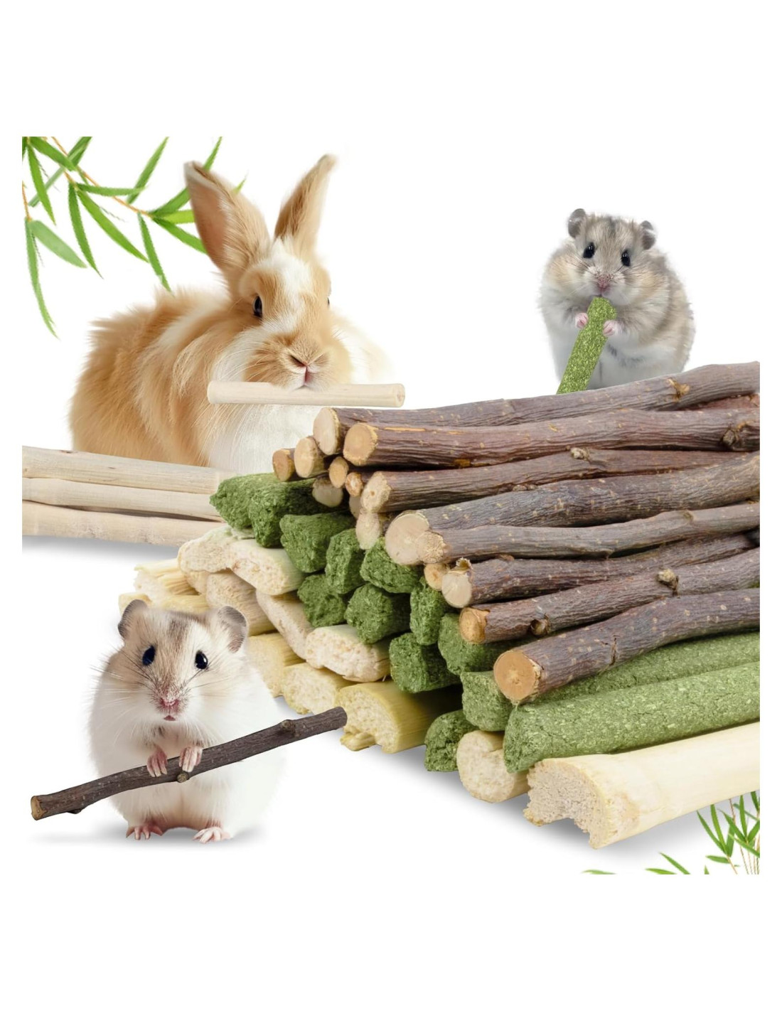 - Regalo de Doble Beneficio para Amantes de las Mascotas: ¡El regalo perfecto para dueños de animales pequeños! Nuestra combinación única de palos de masticar para conejos aborda simultáneamente necesidades nutricionales y dentales cruciales, añadiendo vitalidad a la vida de las mascotas. Este práctico y considerado juguete de masticar para conejos es un regalo ideal, apreciado por conejos, cobayas y más.