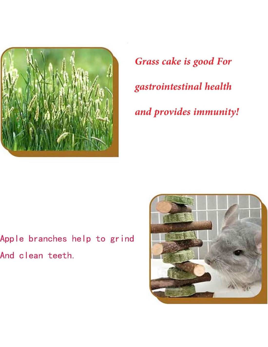 - Material Natural: Nuestro bocadillo natural está enriquecido con seda de alta fibra, los juguetes para masticar de conejo están hechos a mano de palitos de madera de manzana, pueden proteger el crecimiento saludable de los dientes de las pequeñas mascotas. Pasteles de hierba que puedes colgar desde el lado o la parte superior para mantenerlos limpios.