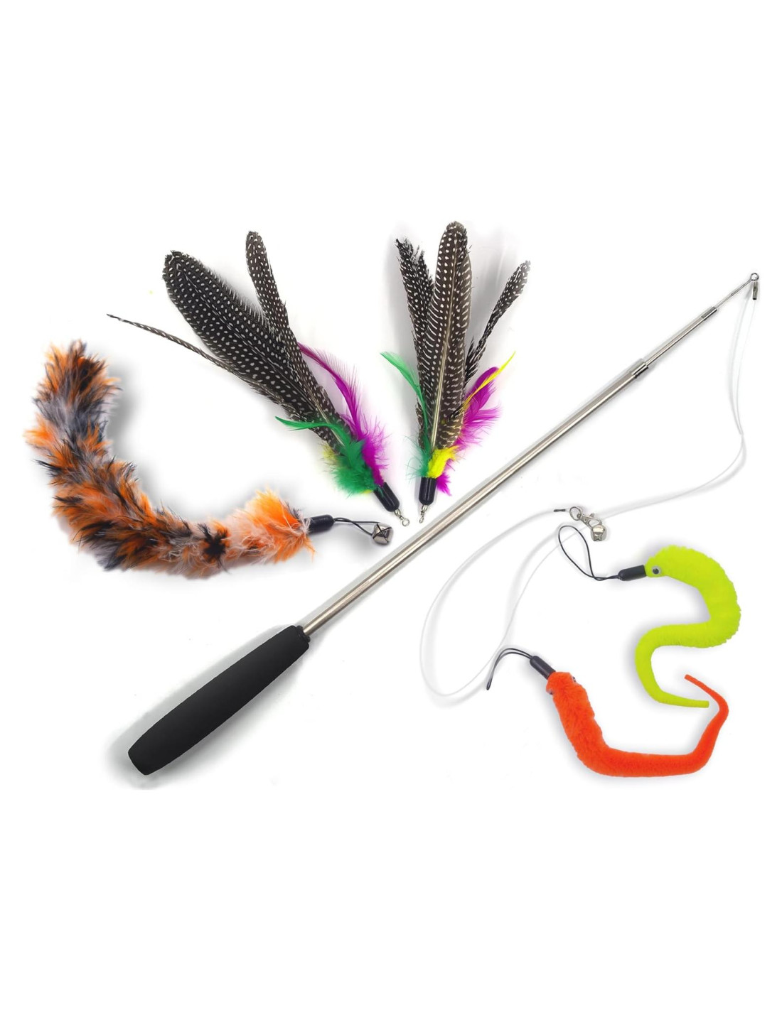 - Diseño de caña de pescar de alta elasticidad, proporciona un mayor rango para jugar. Varita de gato telescópica, fácil de almacenar