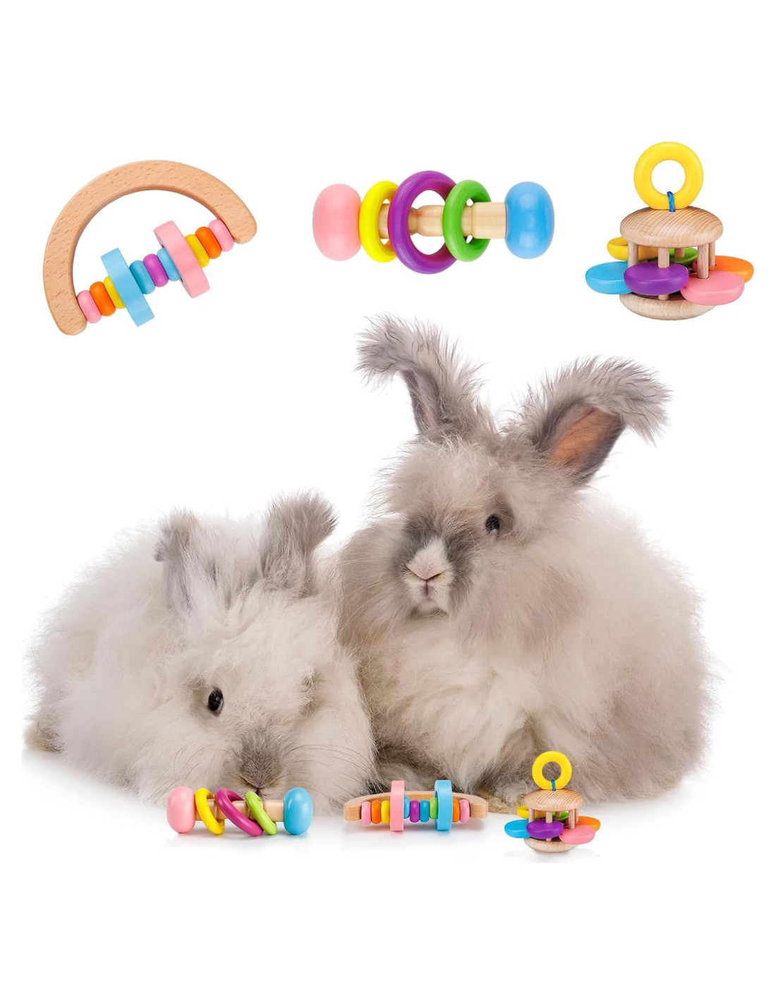 - Seguro: Fabricados con madera de alta calidad, nuestros juguetes para conejos están finamente pulidos para ser resistentes y evitar mordeduras. Con bordes suaves diseñados para prevenir daños a tus pequeñas mascotas, brindan tranquilidad mientras tus amigos peludos juegan.