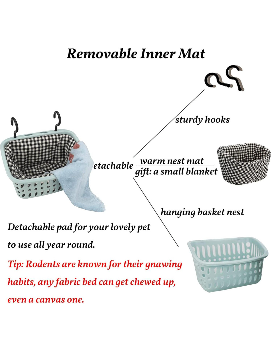 - Fácil de Usar: La hamaca viene con 2 ganchos y todo lo que necesitas es colocar los ganchos en los agujeros de la cesta proporcionada y luego simplemente colgar la cesta en la jaula (por favor, consulta el video para una instalación simple)