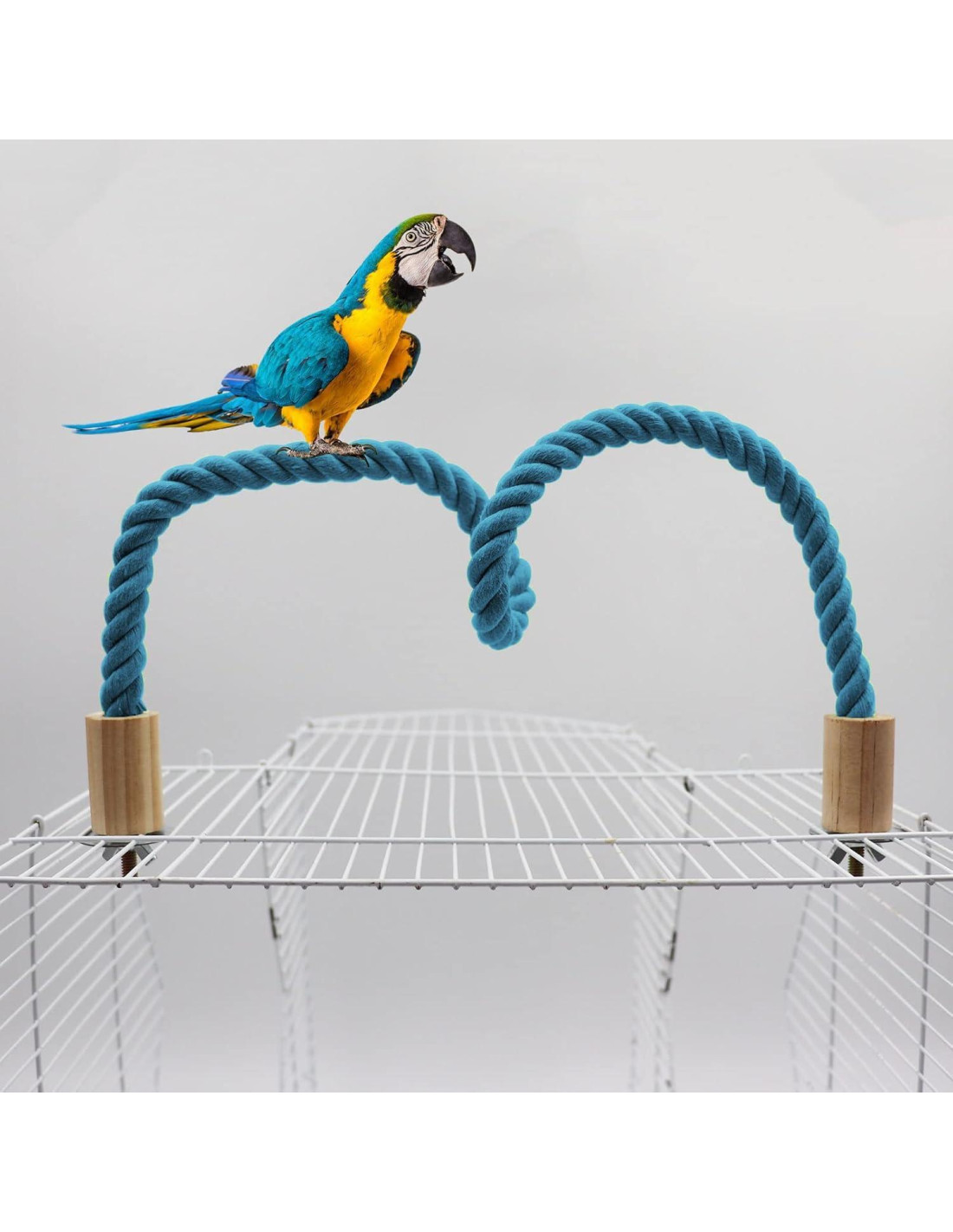 - [Percha de Cuerda para Aves Divertida] : El juguete de cuerda para aves está hecho de hilo de algodón azul claro envuelto con alambre de hierro, y ambos extremos están hechos de madera. Debido a la plasticidad del alambre de hierro en el medio, puedes ajustarlo a cualquier estilo que desees.