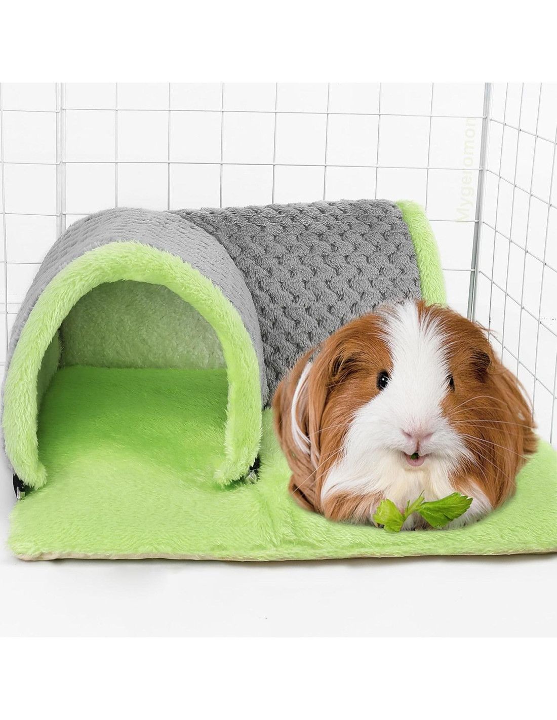 - Comodidad: El túnel de escondite para cobayas está hecho de suave tela de felpa que mantiene a los cobayas cálidos y cómodos para jugar y descansar, incluso en invierno.