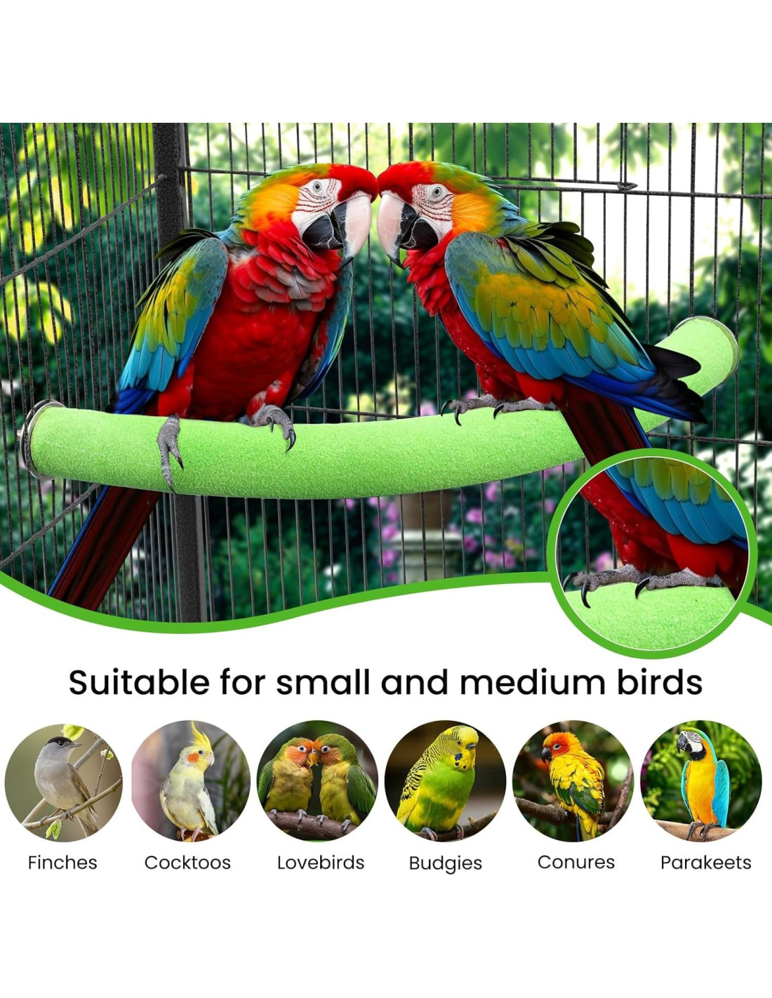 - Material: La superficie rugosa de la percha para pájaros está hecha de arena de cuarzo natural y PVC de alta calidad en su interior con color de grado alimenticio, materiales no tóxicos.