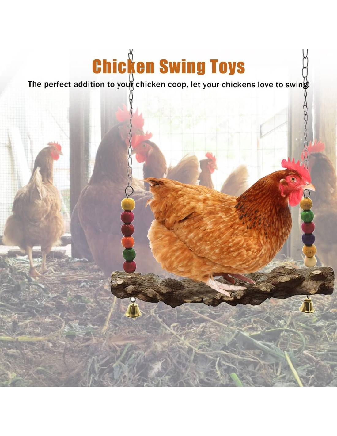 - [Tamaño adecuado] El paquete incluye 2 juguetes de columpio para pollos, nuestra percha para pollos tiene una cadena de acero inoxidable de 45 cm (17.72 pulgadas) de largo, la longitud del columpio es de 31 cm (15.5 pulgadas), adecuada para pollos de todas las edades y todas las razas de gallineros, también adecuada para loros medianos y grandes, la superficie también es desigual, fácil para que los pollos pongan sus patas en el columpio para evitar resbalones.
