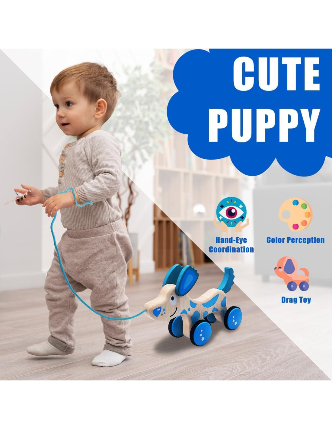 - El Mejor Amigo del Bebé: El juguete de tirar perro es una mezcla de vintage y moderno, se ve adorable y genial; Las ruedas con borde de goma no hacen ruido; Este adorable juguete de caminar para bebés sería un excelente compañero para niñas y niños, infantes y niños pequeños, con el objetivo principal de mejorar las habilidades motoras finas de los niños y mantener el equilibrio.