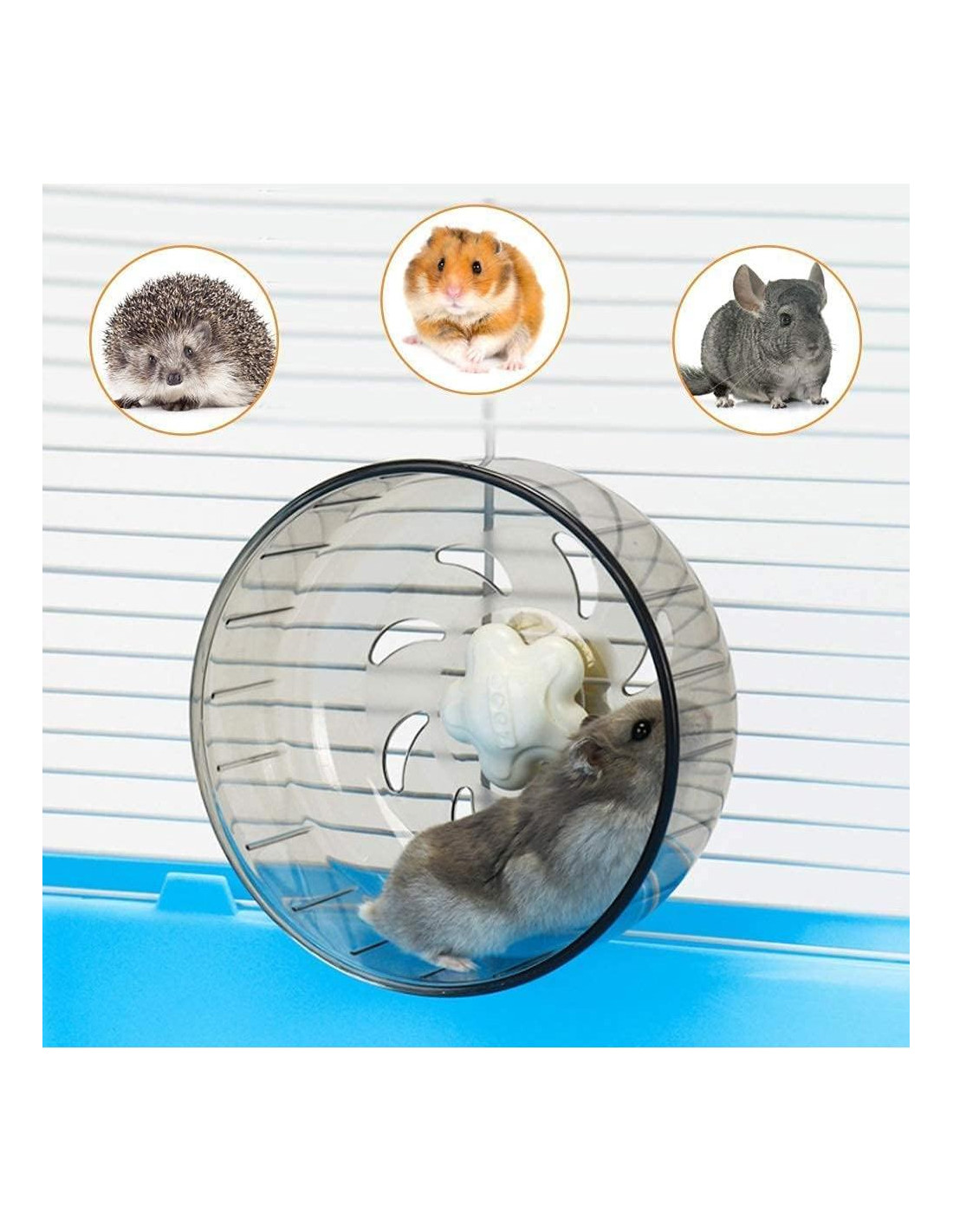 Los hámsters son animales enérgicos. Mientras tengan suficiente vigor, necesitarán ejercicio sin importar si es de día o de noche. ¿Quieres que tu hámster o mascotas pequeñas se diviertan más? Ventajas de la rueda de ejercicio mejorada: 1: El diseño de pista antideslizante, con patrón antideslizante, mantiene las uñas de los hámsters alejadas de lesiones durante el ejercicio. Moldeo en una sola pieza, sin huecos, sin necesidad de preocuparse por las patas del hámster atascadas y lesionadas. 2: El diseño silencioso te permite dormir tranquilo por la noche. El girador silencioso asegura un deslizamiento suave y silencioso de la rueda. No te preocupes por ningún sonido que afecte el descanso de ti y tu familia. 3: Rueda de 5.2 pulgadas (13.2 cm). Fácil de instalar, fácil de limpiar. Se puede conectar directamente a cualquier jaula de alambre. A los hámsters les gustan las ruedas de hámster como a los corredores, disfrutan de una diversión de carrera interminable, ejercitan sus músculos y mantienen su felicidad y salud mental. Ruedas de ejercicio para mascotas. Nota: No laves el rodamiento directamente con agua. Si tienes alguna pregunta sobre los juguetes de rueda para hámsters, contáctanos y lo resolveremos dentro de 24 horas.