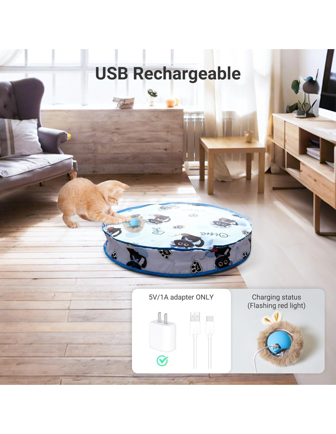 - Diseño ecológico (adaptador de 5V 1A): La característica recargable por USB de este juguete reduce el desperdicio de baterías, convirtiéndolo en una opción ecológica. Fabricado con materiales duraderos, soporta el juego brusco, asegurando una actividad duradera para gatos de interior.