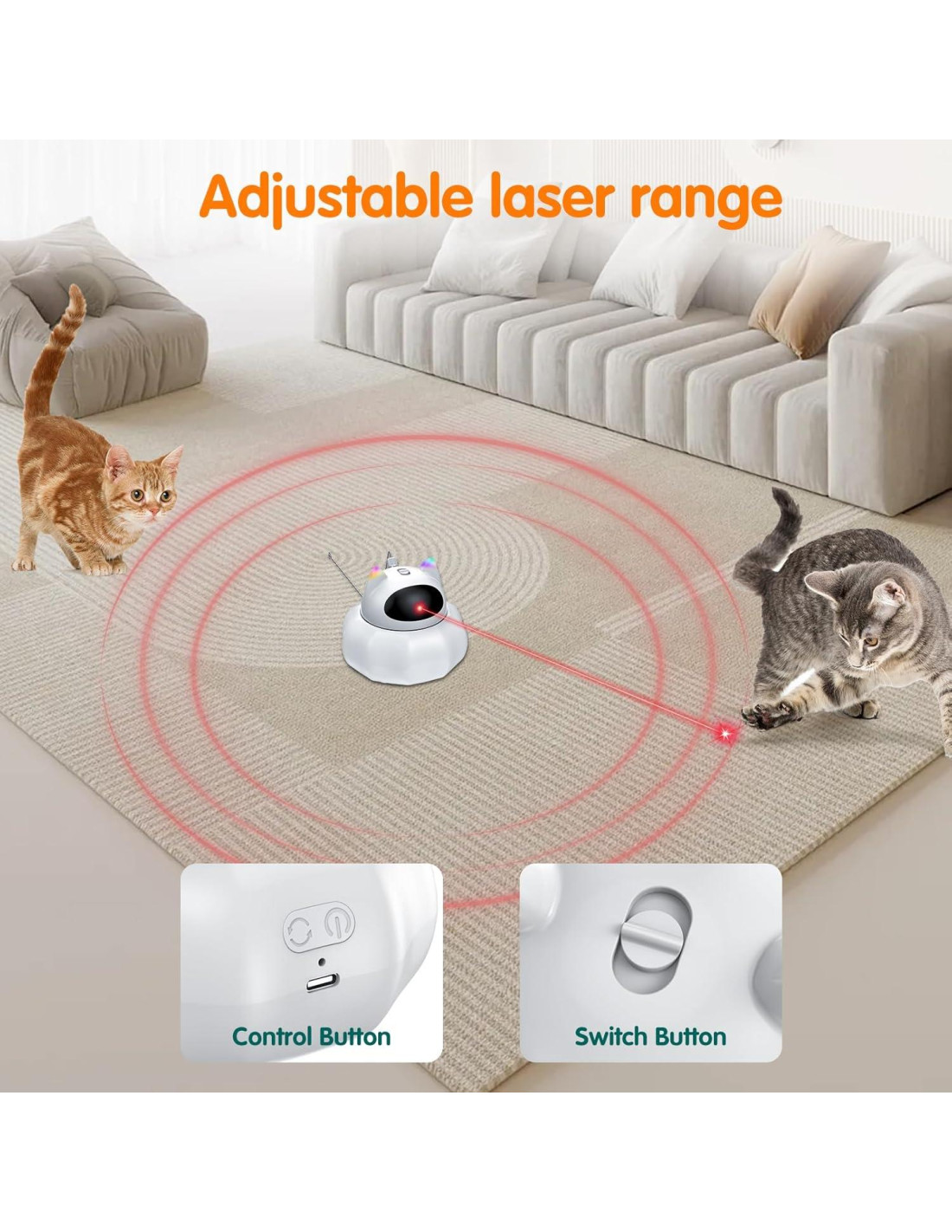 - Ángulo de láser ajustable: ¡Rango de láser ajustable para diversión en el tiempo de juego de múltiples gatos! El conveniente botón ubicado en la cabeza del juguete permite un fácil ajuste del láser rojo, haciéndolo perfecto para entretener a múltiples amigos felinos a la vez. Este juguete promueve la actividad física y mental, manteniendo a tu gato comprometido y enriquecido. Mejora el tiempo de juego utilizando juguetes adicionales para fortalecer el vínculo entre tú y tu gato.