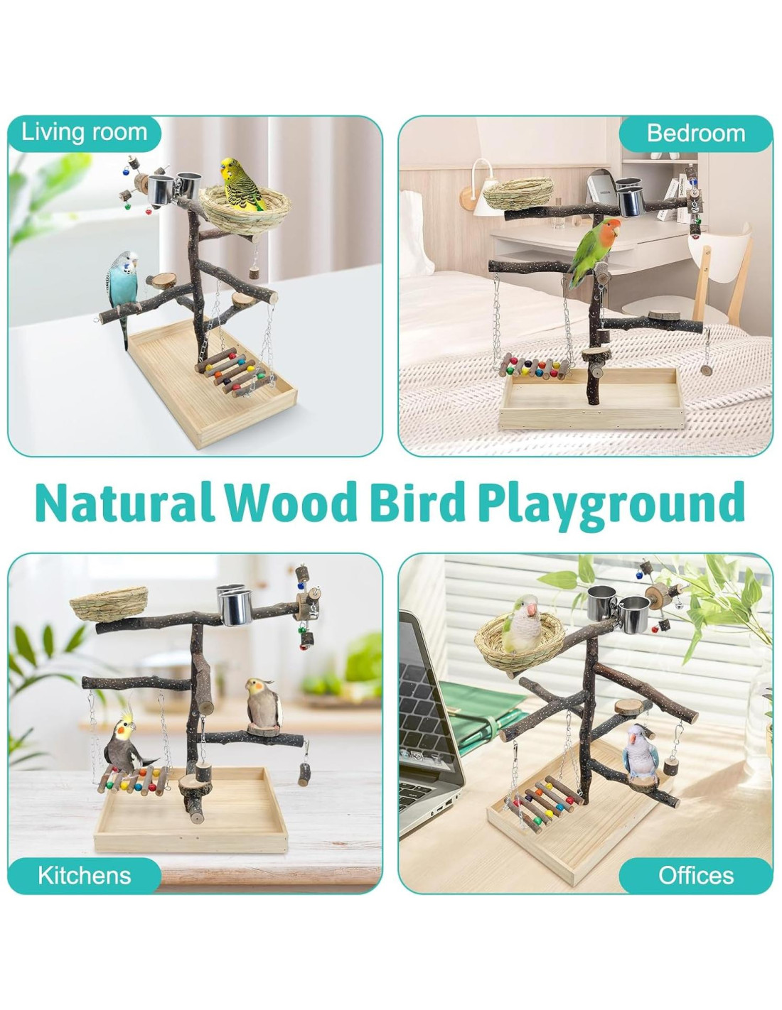 - Diseño Multifuncional: juguetes y alimentadores que se pueden quitar fácilmente por conveniencia. Las alturas y números de ramas se pueden ajustar para adaptarse a sus necesidades. Personalice su parque de periquitos de madera para entrenamiento, forrajeo, descanso o ejercicio