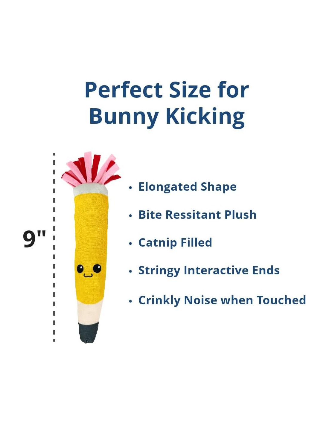 - Lápiz Crujiente: Los juguetes de hierba gatera para gatos de interior siempre deben ofrecer nuevos sonidos y texturas para nuestros gatos curiosos. El lápiz para gatitos satisface esas necesidades con su papel crujiente que cruje al tacto.