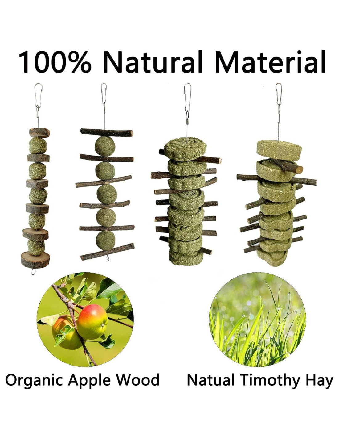 - Mascota Aplicable: Estos juguetes de masticar para conejos se pueden colgar en las jaulas con ganchos, aptos para conejos, conejitos, chinchillas, cobayas, ardillas, loros, hámsters, gerbos y otros roedores, proporcionando más diversión para tus mascotas.