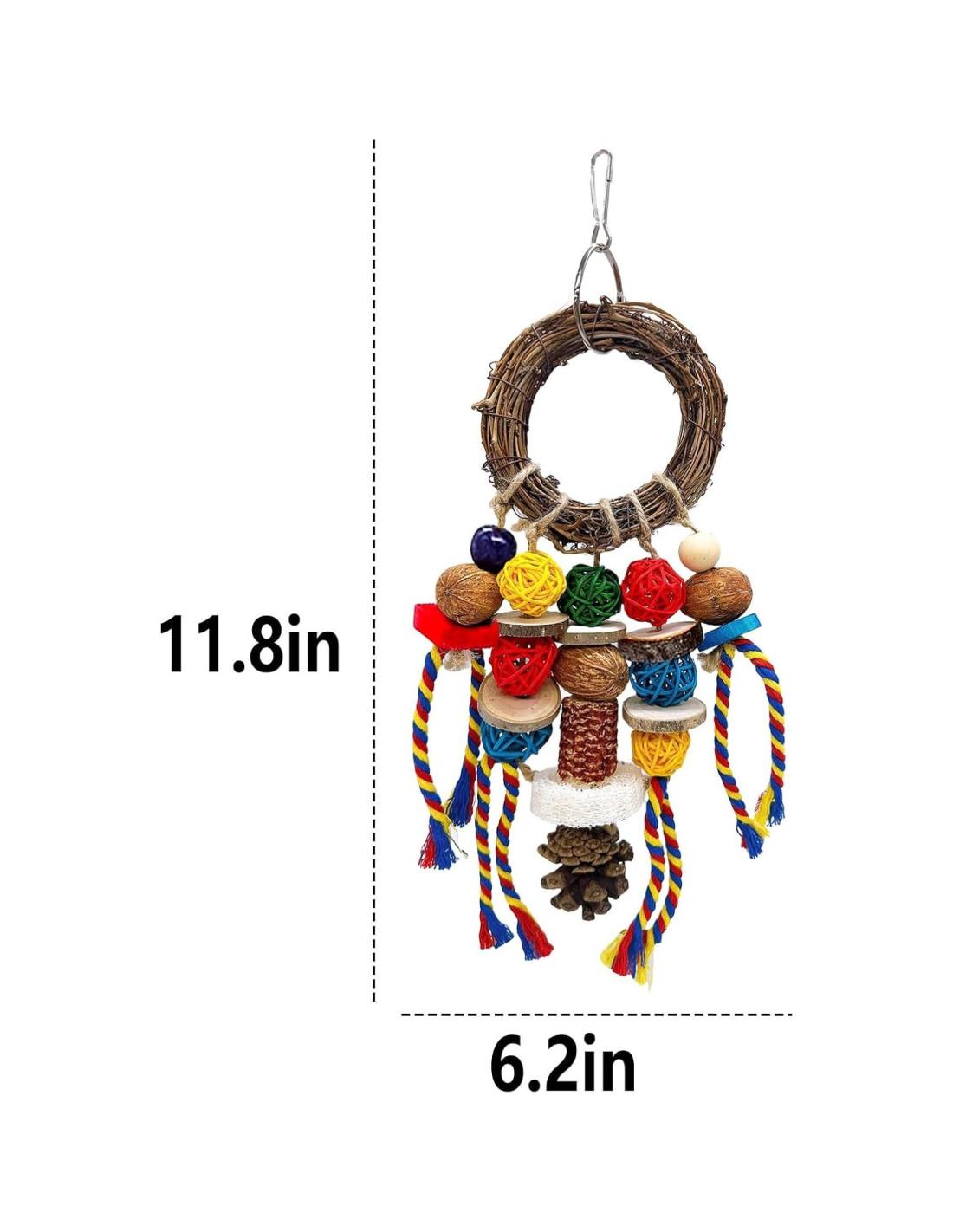 - [Juguete Masticable Colgante]: Nuestros amigos conejos necesitan un juguete masticable, así que elíjanos como el mejor regalo para su querida mascota. Madera de manzana, nueces, bola de pino, cáscaras de maíz y lufa se combinan para crear un juguete natural para roedores, aumentando su interés en comer y masticar.