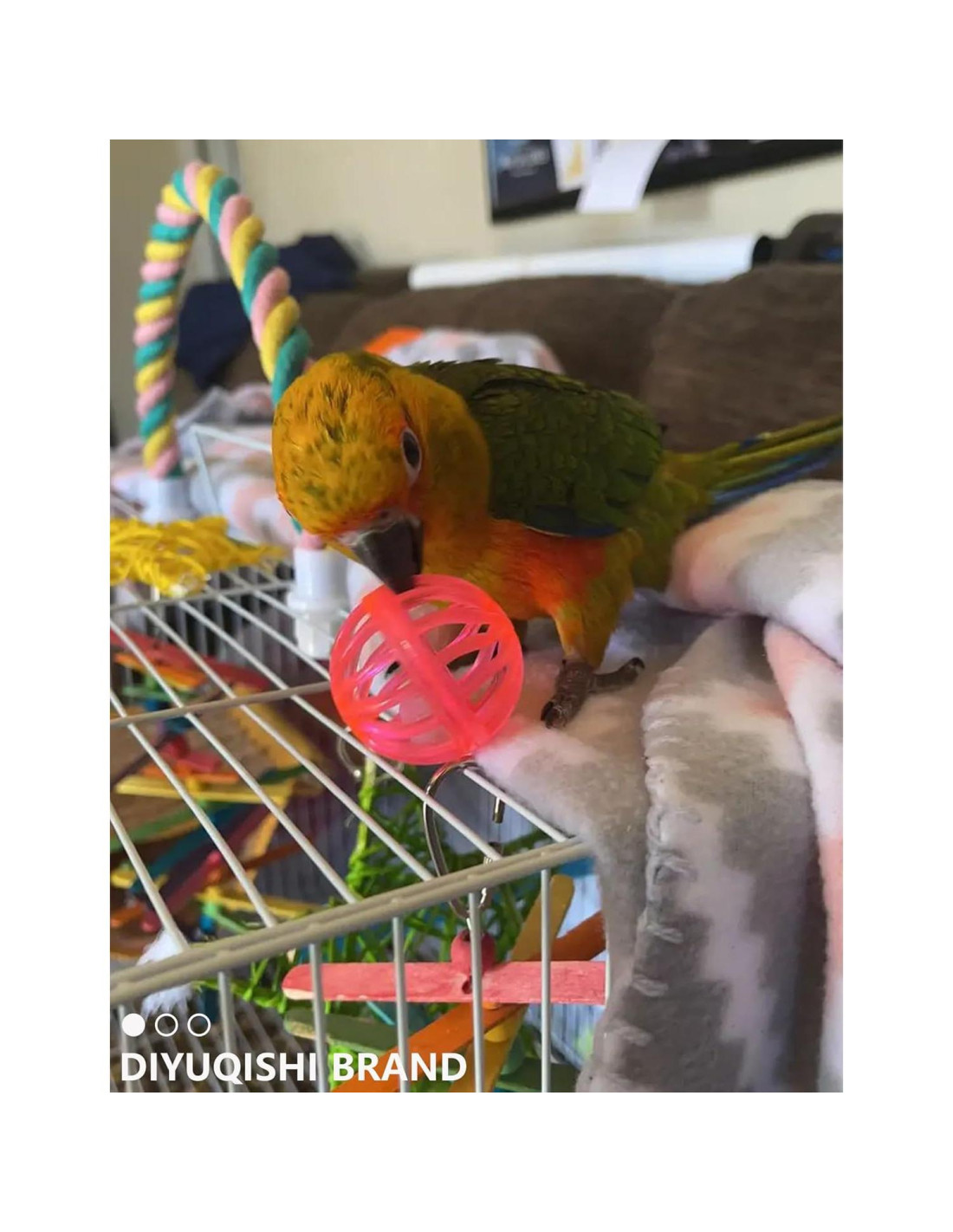 - Diversión que Hace Sonido - Las bolas de campana y los sonajeros crean sonidos emocionantes que atraen a loros, agapornis y otras aves juguetonas.