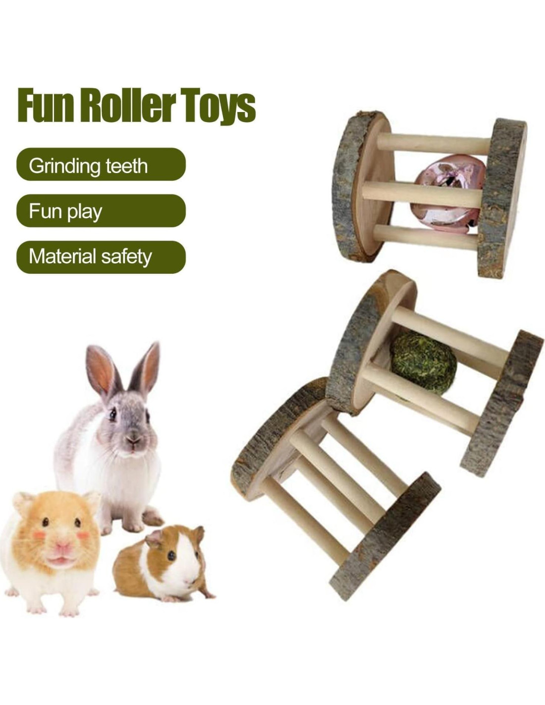 - MATERIAL NATURAL: Hecho de madera sin tratar que es segura para que los animales pequeños mastiquen y jueguen durante sus actividades diarias