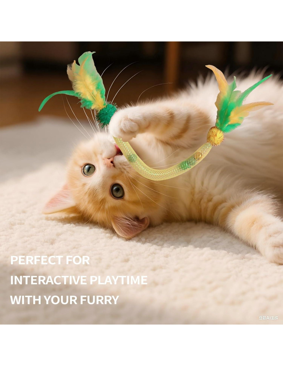 - Estimulación 3-en-1 con Pluma, Campana y Hierba Gatera - Este juguete para gatos combina plumas coloridas, hierba gatera atractiva y campanas suaves dentro de un cuerpo de malla elástica duradera, activando instantáneamente los instintos de tu gato para perseguir, morder y saltar. Ideal tanto para juguetes de gatitos para juego en solitario como para juguetes interactivos para gatos de interior.