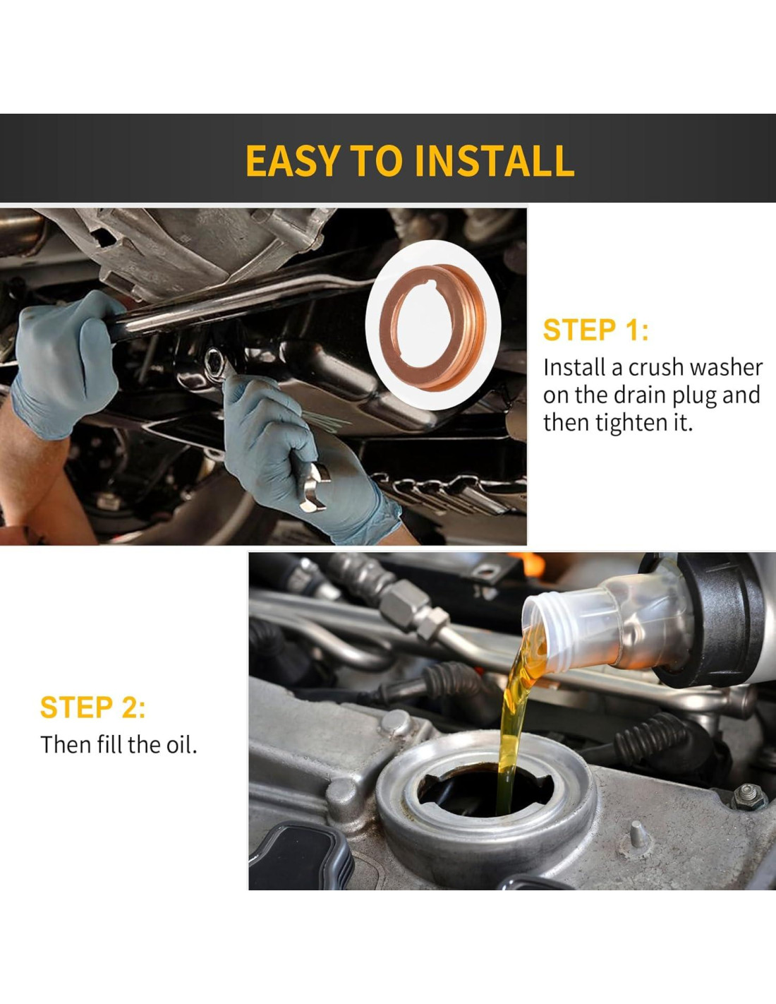 - Alta calidad: Nuestra junta de tapón de drenaje de aceite está hecha de aleación de aluminio de alta calidad, duradera y resistente a la corrosión. Se ajusta perfectamente al tapón de drenaje de aceite, proporcionando un ajuste más apretado y seguro.