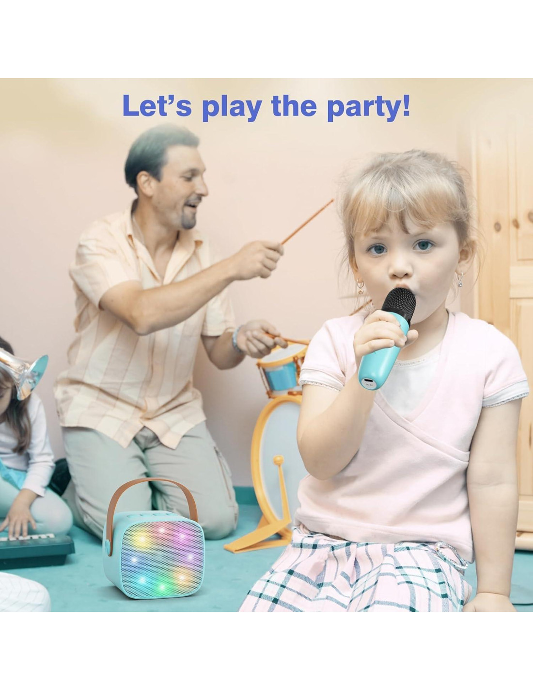 - [Sonido claro y de alta calidad] El altavoz Bluetooth portátil y 2 micrófonos inalámbricos están equipados con materiales certificados amigables para niños, calidad de sonido HI-FI y tecnología avanzada. La mini máquina de karaoke tiene sonido de alta fidelidad y graves potentes, lo que hace que el sonido sea más claro y te brinda más diversión en la experiencia de canto.