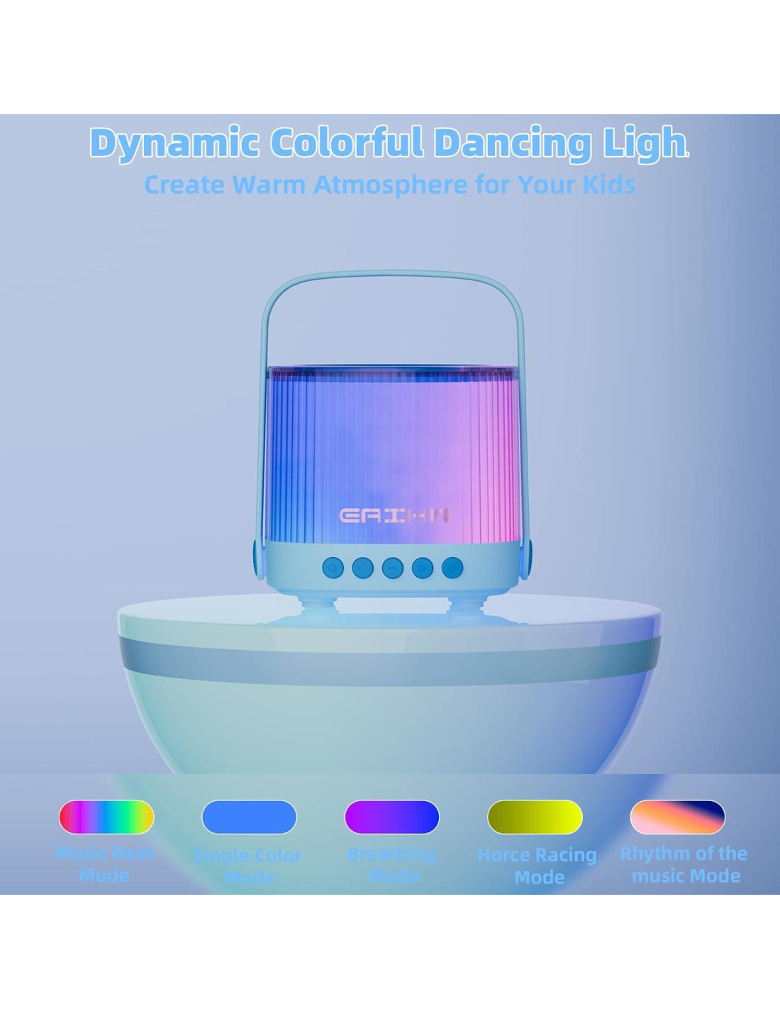 - Espectáculo de Luces Disco: Nuestra máquina de karaoke bluetooth ofrece cinco modos de iluminación dinámica. En el modo de un solo color, tiene la opción de elegir entre una variedad de colores. Además, en el modo de ritmo de música, las luces se sincronizan con los ritmos musicales, mejorando la experiencia de karaoke inmersiva y animada. Esta característica es ideal para infundir emoción y energía en cualquier reunión. Puede ayudar a sus hijos a mantener a sus invitados entretenidos y comprometidos durante toda la noche.