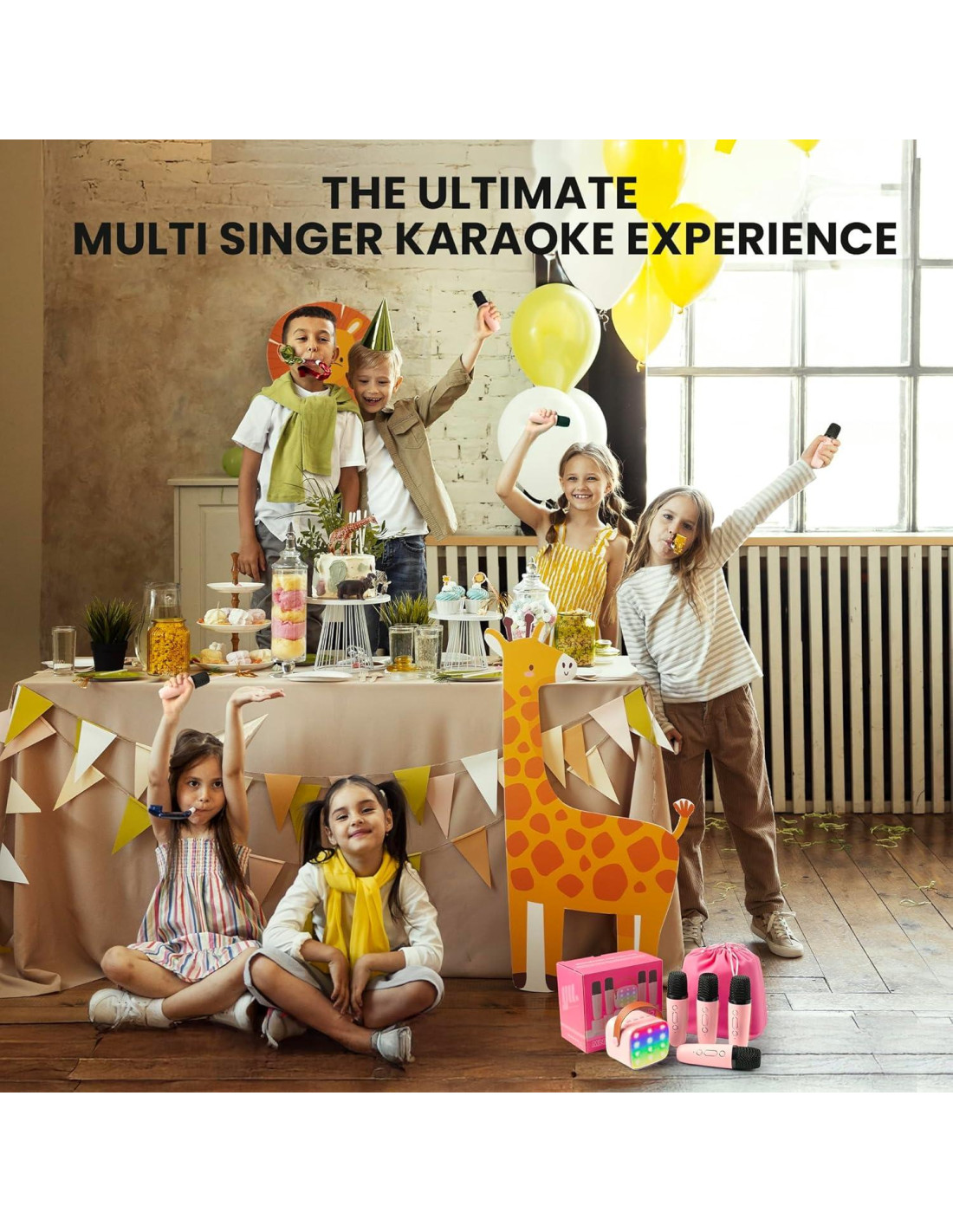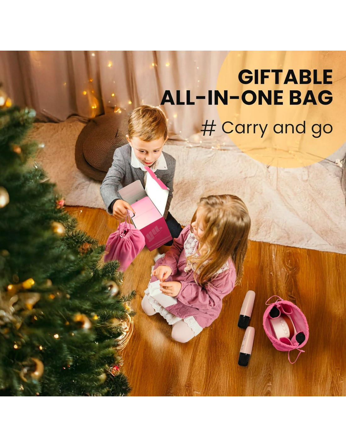 - Máquina de Karaoke con 4 Micrófonos: El set de karaoke mini YLL viene con 4 micrófonos inalámbricos, permitiendo que 4 niños canten al mismo tiempo, proporcionando la mejor experiencia de karaoke para múltiples cantantes. No más '¿Quién sigue?'. Con bolsa de regalo extra - fácil de almacenar, llevar y usar