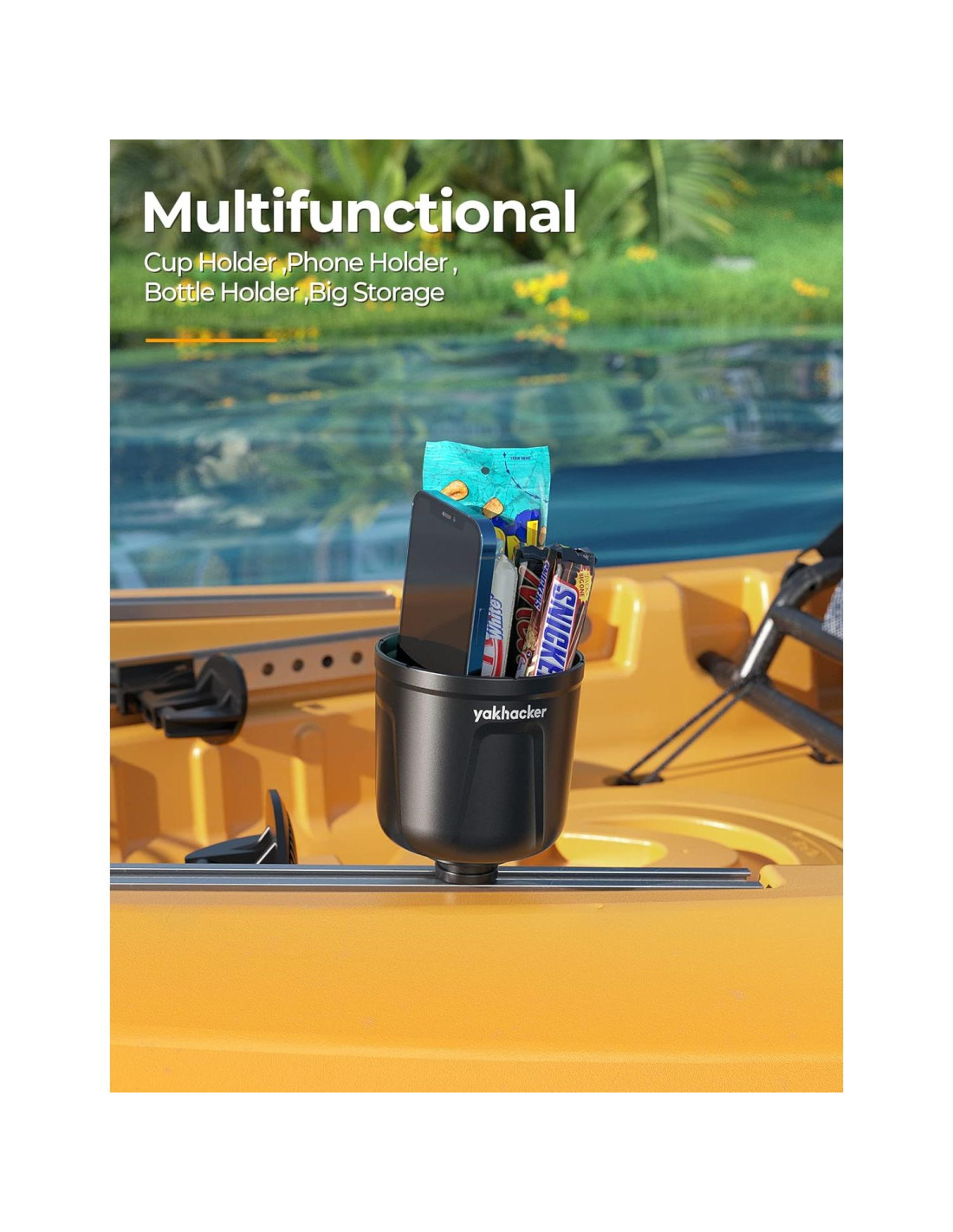 - [Soporte para Tazas Multifuncional] El Soporte para Tazas YAKHACKER no solo se puede usar como soporte para tazas para sostener bebidas o vasos de agua, sino que también es adecuado para almacenar teléfonos móviles, gafas, monedas, llaves, billeteras y otros artículos. Las ranuras en el borde del soporte para tazas también son muy convenientes para colgar un señuelo mientras cambias uno.