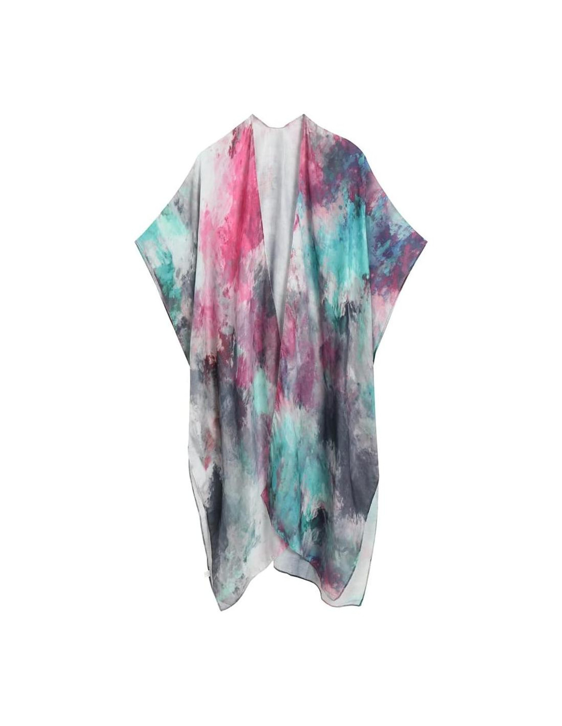 - Manga de murciélago de media longitud, abertura lateral, frente abierto, hermoso estampado floral y teñido anudado. Tejido suave, resalta la diferencia y fluidez de estos kimonos de playa