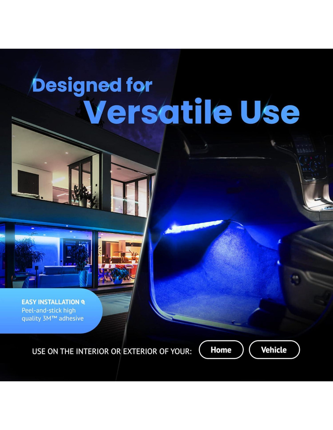 - Fácil de Instalar - Personaliza tu viaje sin complicaciones. Estas luces de piso para coches vienen con un respaldo adhesivo de espuma 3M para una instalación rápida y conveniente. Además, nuestras luces interiores para coches son dispositivos plug-and-play compatibles con cualquier sistema de 12V DC.