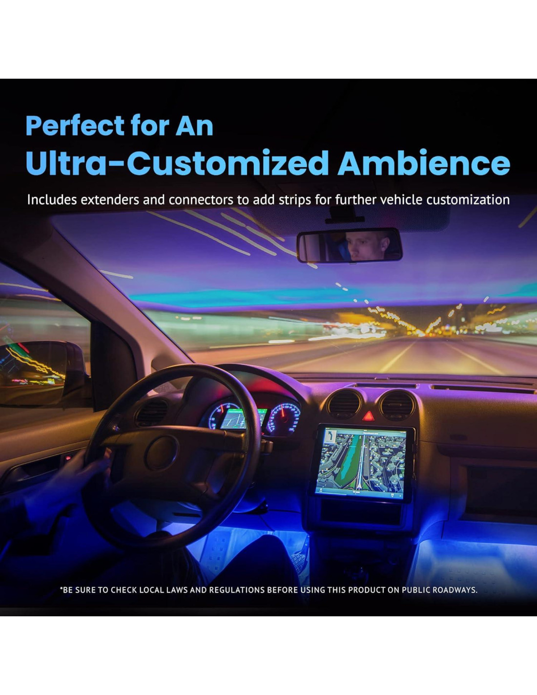 - Acentúa tu Viaje con Luces - Transforma la atmósfera de tu coche con el Kit de Inicio MAX de Alpena. Este paquete de tiras de luz exteriores e interiores contiene dos luces interiores de coche de alto rendimiento de 30.48 cm para acentuar tu coche con un brillo brillante.