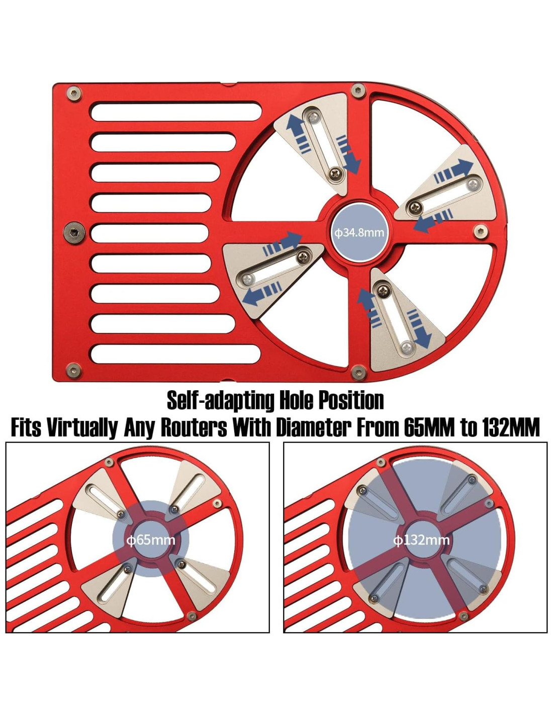- COMPATIBLE: Se adapta a la mayoría de las marcas de routers, como DeWalt, Makita, Festool, Milwaukee y prácticamente cualquier router con un diámetro de 65mm a 132mm; El diámetro del agujero central está diseñado para aceptar las guías estándar de 34.8mm, lo que aumenta la usabilidad general.