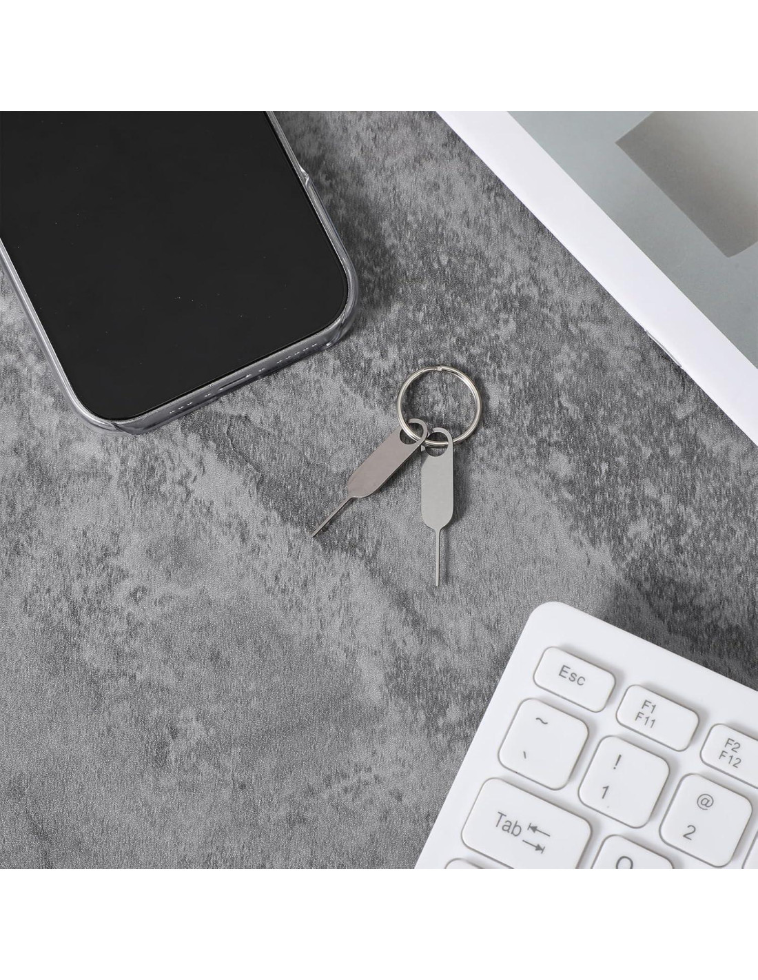 - [Juego completo para conveniencia] : Cada juego incluye dos herramientas de extracción de tarjeta SIM y un llavero. Este conjunto completo de herramienta de expulsión de SIM es perfecto para cualquiera que requiera acceso rápido y fácil a la tarjeta SIM de su dispositivo, proporcionando practicidad y valor