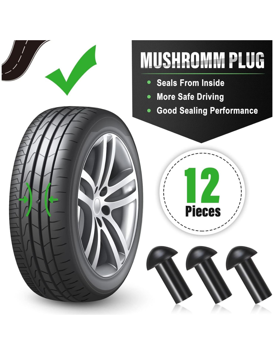 - Diseño Práctico: la cabeza del tapón de hongo llena la perforación desde el interior y la cabeza de hongo está cerca de la pared interior y puede agarrar el neumático desde el interior, de modo que el aire no escape, proporcionando así un mejor sellado, suficientes herramientas de reparación hacen que la reparación de neumáticos sea simple en la vida diaria