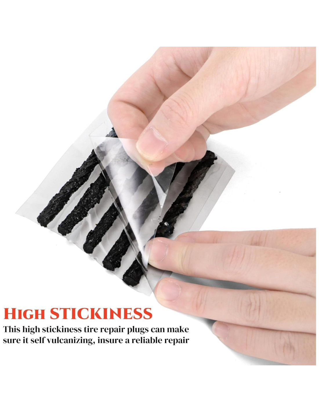 - Reparación de Emergencia: Si su vehículo tiene un neumático desinflado o fuga de aire, esta tira de sellado de goma puede reparar un neumático pinchado rápida y efectivamente, y llevarlo de vuelta a la carretera en pocos minutos.