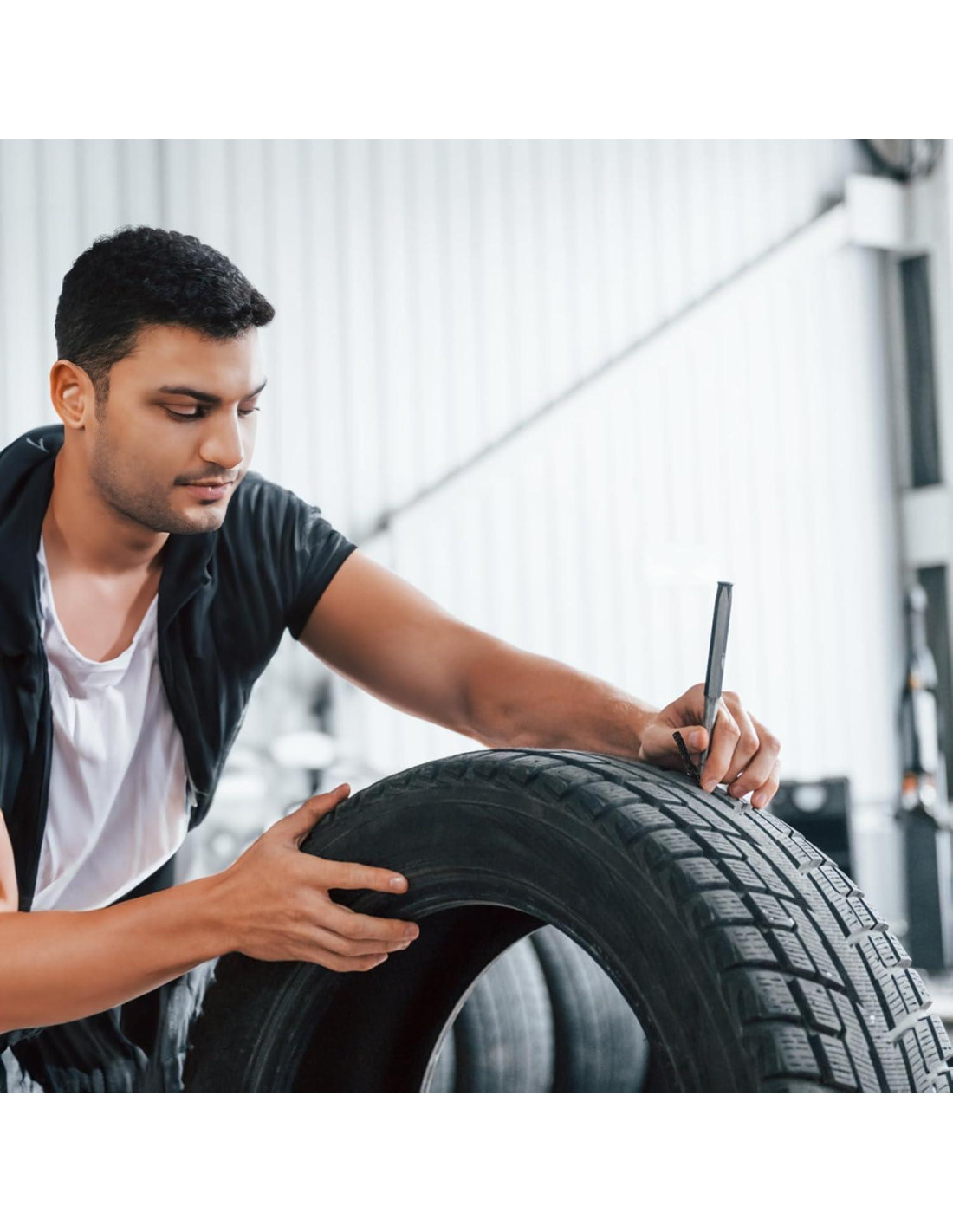 Acshio es la marca que persigue productos de alta calidad y deleita a los consumidores con productos y experiencias superiores. Gran Sellado: Los tapones de parche de neumáticos Acshio están hechos de goma de alta calidad para un buen rendimiento de sellado, cuentan con resistencia a altas temperaturas, son flexibles y resistentes, perfectos para la reparación de neumáticos. Reparación de Emergencia: Si su vehículo tiene un neumático desinflado o fuga de aire, esta tira de sellado de goma puede reparar un neumático pinchado rápida y efectivamente, y llevarlo de vuelta a la carretera en pocos minutos. Fácil de Usar: El tapón de reparación de neumáticos es fácil de usar, se puede reparar sin quitarlo de la llanta. Simplemente inserte los tapones para neumáticos de coches usando una herramienta (no incluida), gire lentamente, retire el tenedor y recorte.