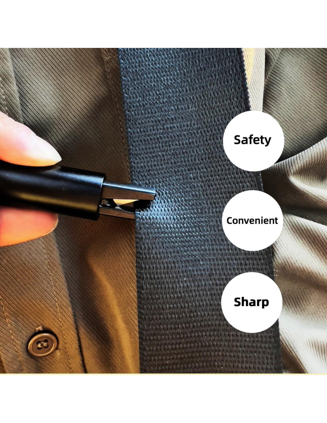- [Cortador de Cinturones de Seguridad Rápido y Seguro] El cortador de cinturones de seguridad en forma de U incorporado cuenta con una hoja afilada de acero inoxidable oculta dentro de un marco protector - diseñado para prevenir lesiones accidentales en las manos. En una emergencia, solo alinéalo con el cinturón de seguridad, empuja hacia adelante y estarás fuera. Sin luchas, sin torpezas. Es rápido, seguro y podría marcar la diferencia.
