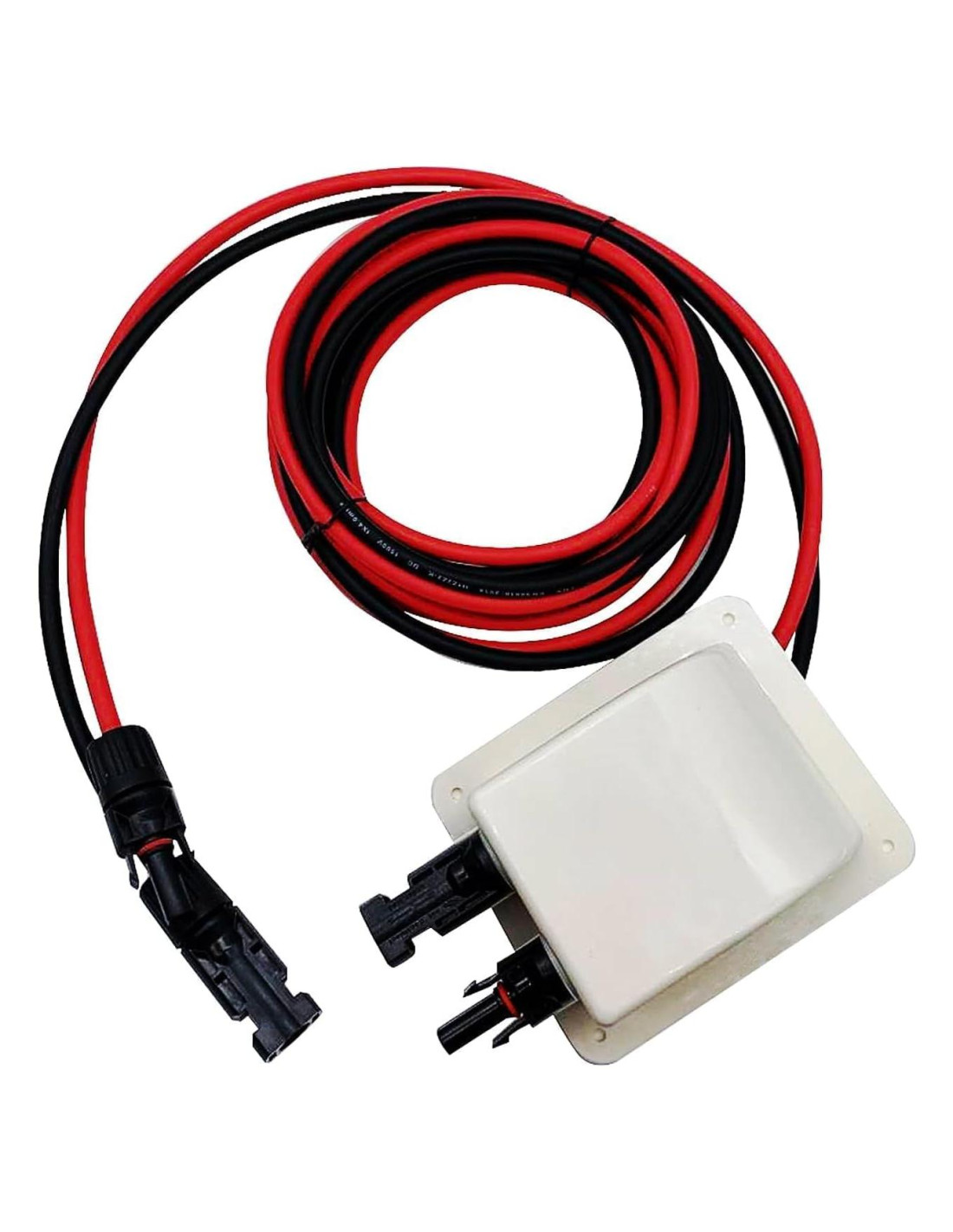 - Instalación simple: Un extremo tiene un conector solar, que se puede conectar directamente al panel solar; pase el cable a través de la cabeza de entrada y apriete la tapa, pase el cable de conexión a través del orificio reservado en la parte superior del vehículo recreativo y conecte el conector en el otro extremo; según la ubicación y los requisitos de sellado, puede usar pegamento o sellador decorativo para sellar la brecha.