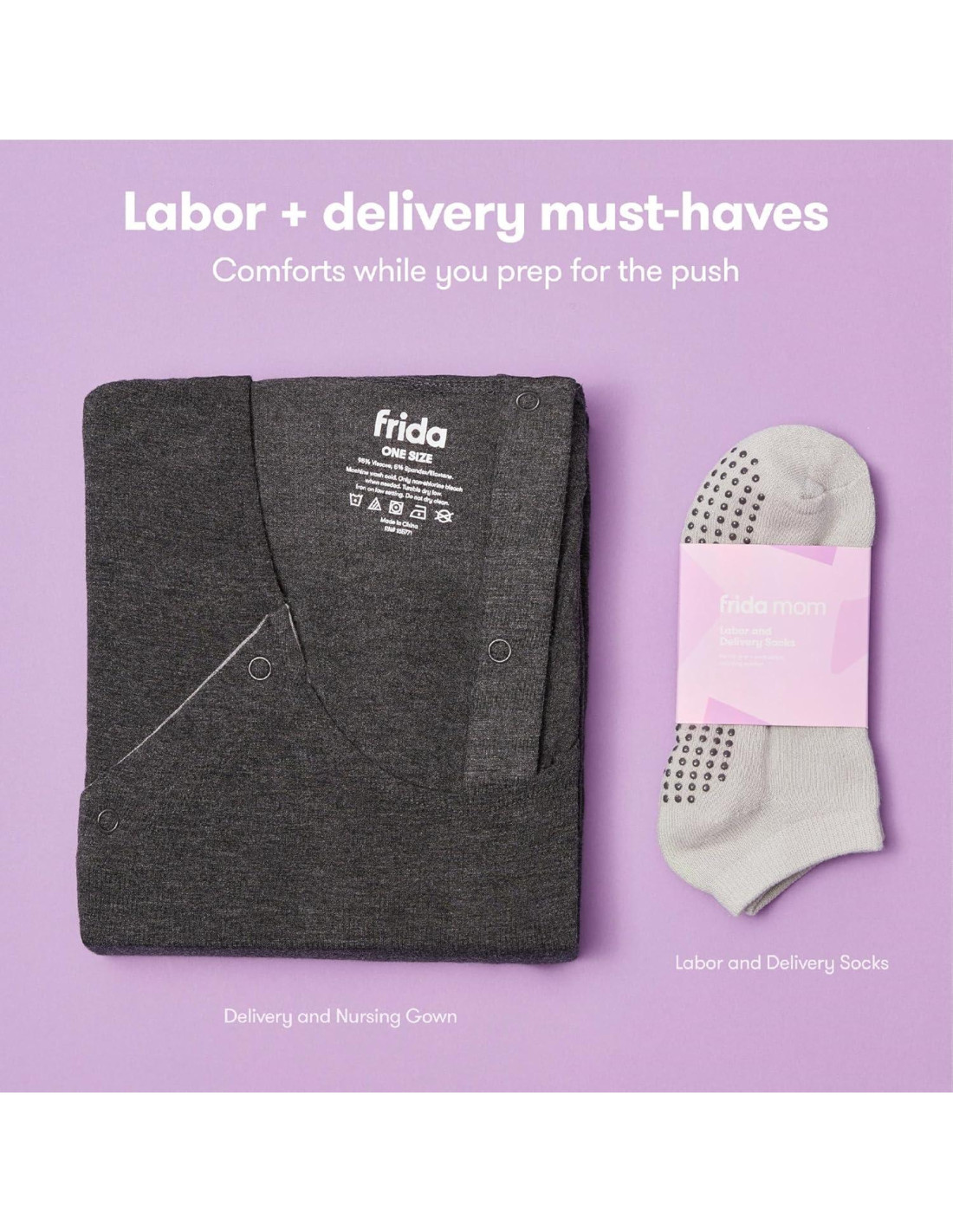 Envía el estrés empacando con esta bolsa completa de esenciales para el trabajo + parto, recuperación postparto y más. Todo lo que mamá realmente necesitará para el hospital, cuidadosamente seleccionado y preempacado, para que pueda evitar la carrera de último minuto. Bata y calcetines para el trabajo y parto, régimen de recuperación postparto de 5 pasos, bálsamo para pezones, toallitas Skip The Shower y esenciales de cuidado para recién nacidos de Frida Baby - tijeras para uñas, limas para uñas, cepillo para el cabello + peine. El regalo ideal para dar y recibir.