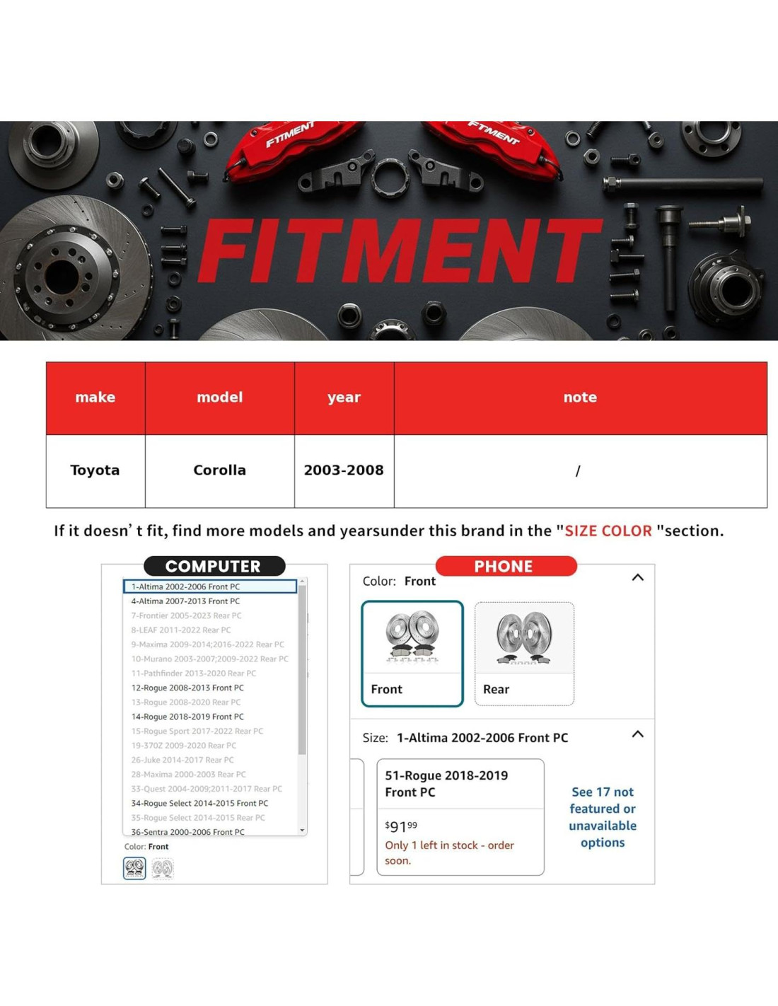 - [Compatibilidad del Vehículo] Compatible con Toyota Corolla 2003 2004 2005 2006 2007 2008 Delante