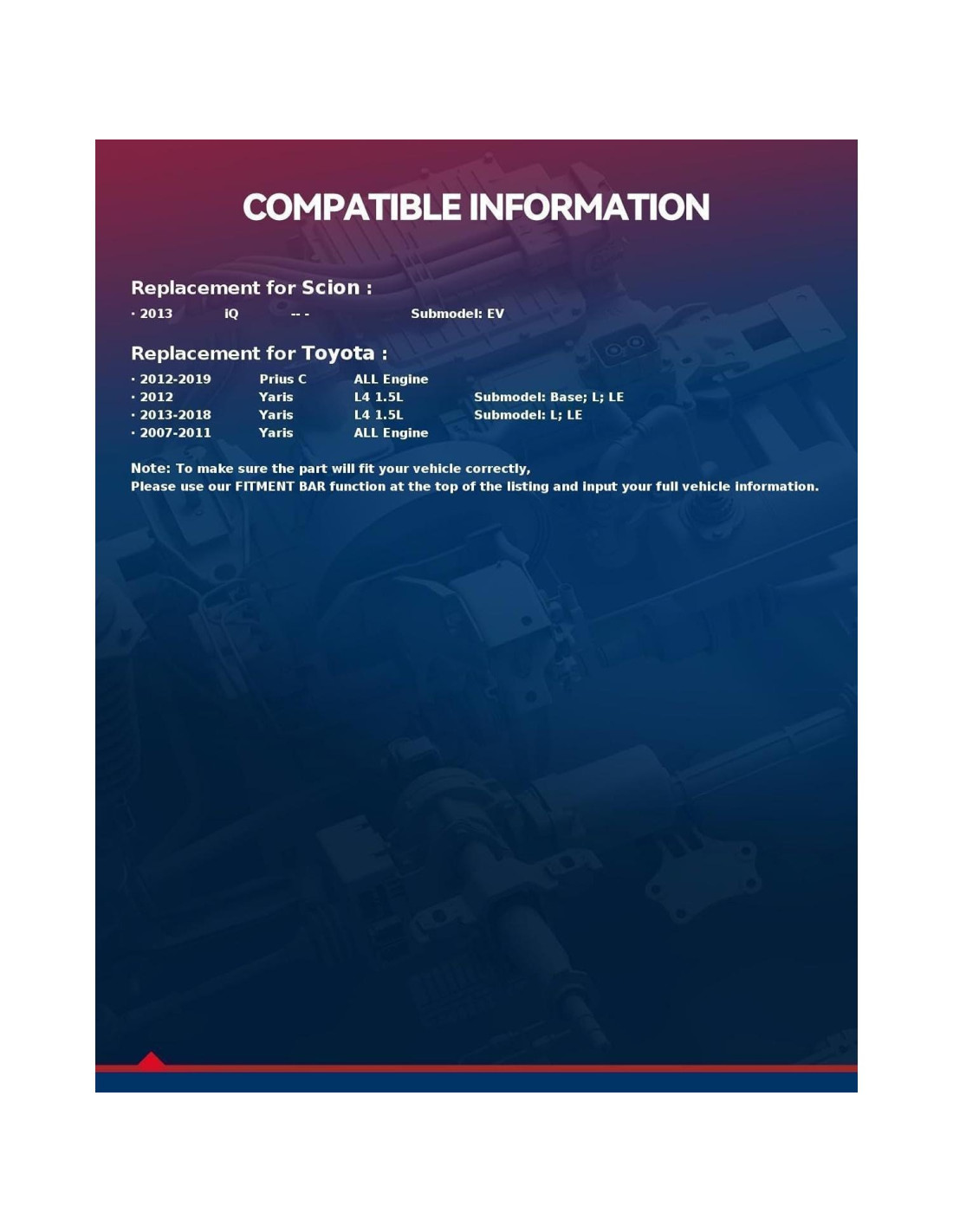 - Compatibilidad del Vehículo: KAX 31439+D1184 kit de freno frontal de reemplazo para 2007-2011 Toyota Yaris, 2012-2019 Toyota Prius C, 2012-2018 Toyota Yaris 1.5L, 2013 Scion iQ. El kit de frenos y discos está diseñado para un rendimiento de freno mejorado en comparación con OE.