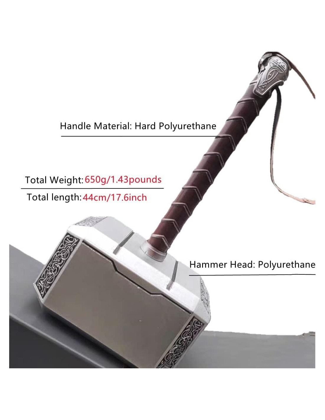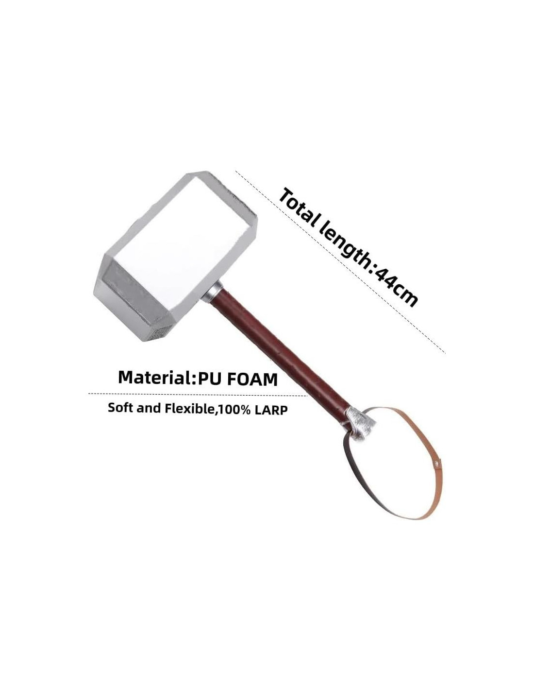 Suave y seguro: hecho de material de espuma PU de alta resistencia y seguro, suave y flexible, 100% LARP. Marca: damdos, medida del accesorio grande: aproximadamente 44 cm x 22 cm x 13 cm. Detalle: tamaño completo, correa de cuero genuino, ideal para LARP, jugadores de rol, disfraces, montaje en pared, coleccionistas, regalos de cumpleaños. Práctico y ligero: el martillo está adornado con partes negras y plateadas que se complementan entre sí. Contenido del paquete: 1 martillo.