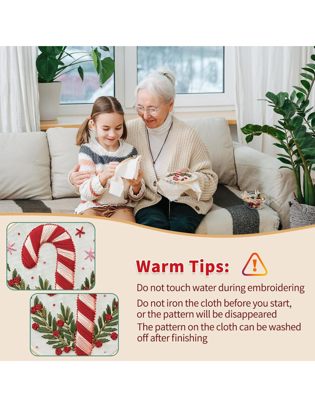 - Diseño Reflexivo: el set de bordado navideño con patrón e instrucciones es adecuado para principiantes en bordado, el patrón preimpreso puede ayudarte a manejar los hilos de bordado, y puedes lavarlo fácilmente después de terminar el proyecto, y también te ofrecemos instrucciones en español, para que los principiantes puedan aprender fácilmente la costura