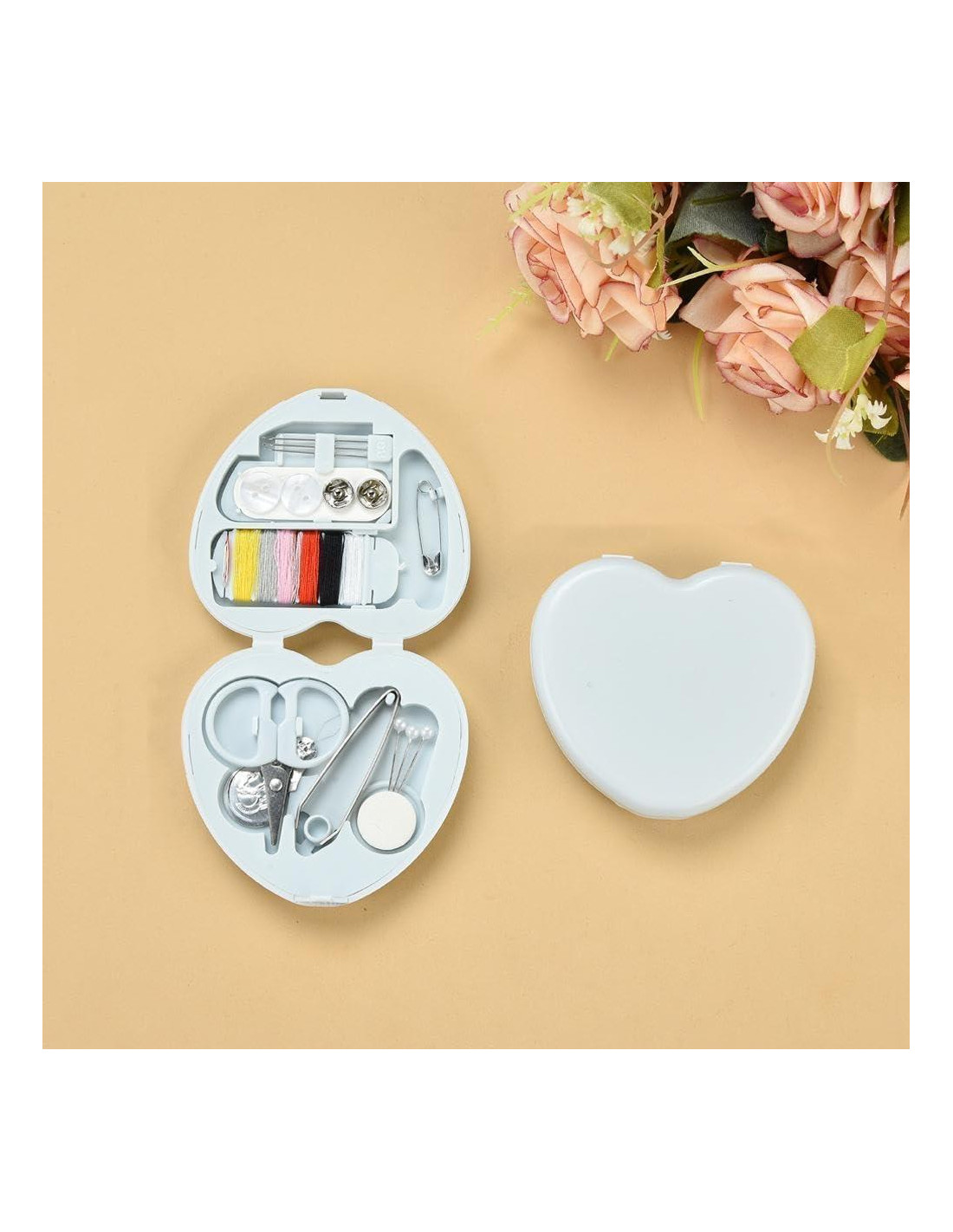 - Almacenamiento Organizado: Los suministros de costura están ordenadamente organizados en una caja conveniente para un fácil acceso.