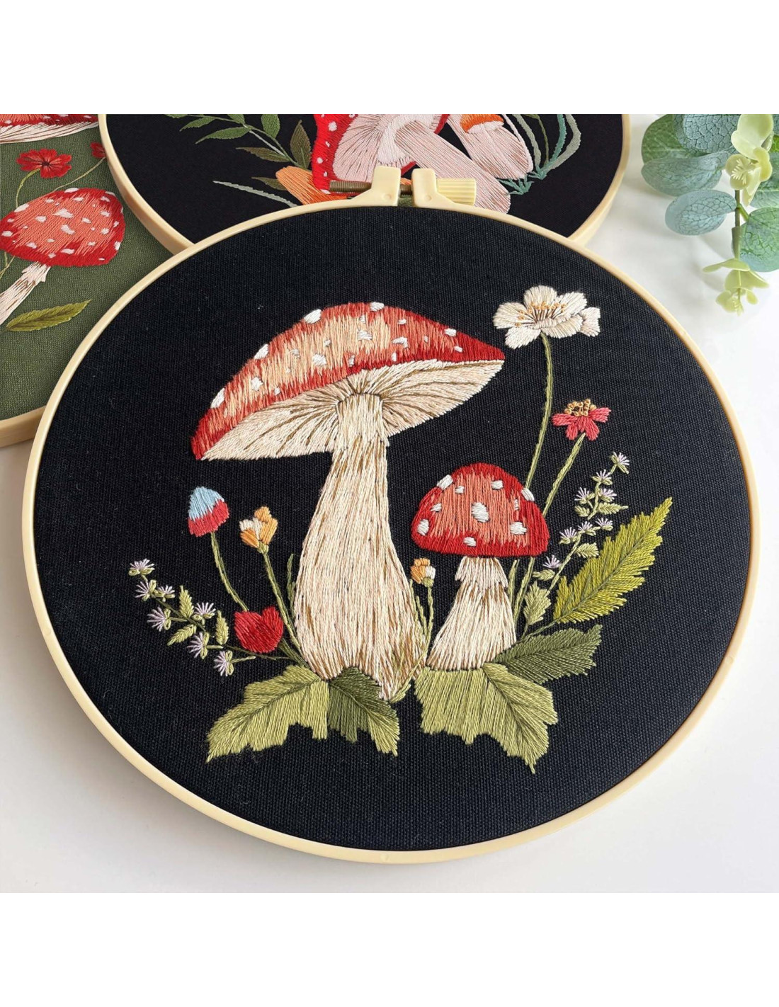 - Particularmente: Este conjunto de costura manual de arte viene con tres conjuntos de patrones de bordado de champiñones, cada uno con su propio diseño único.