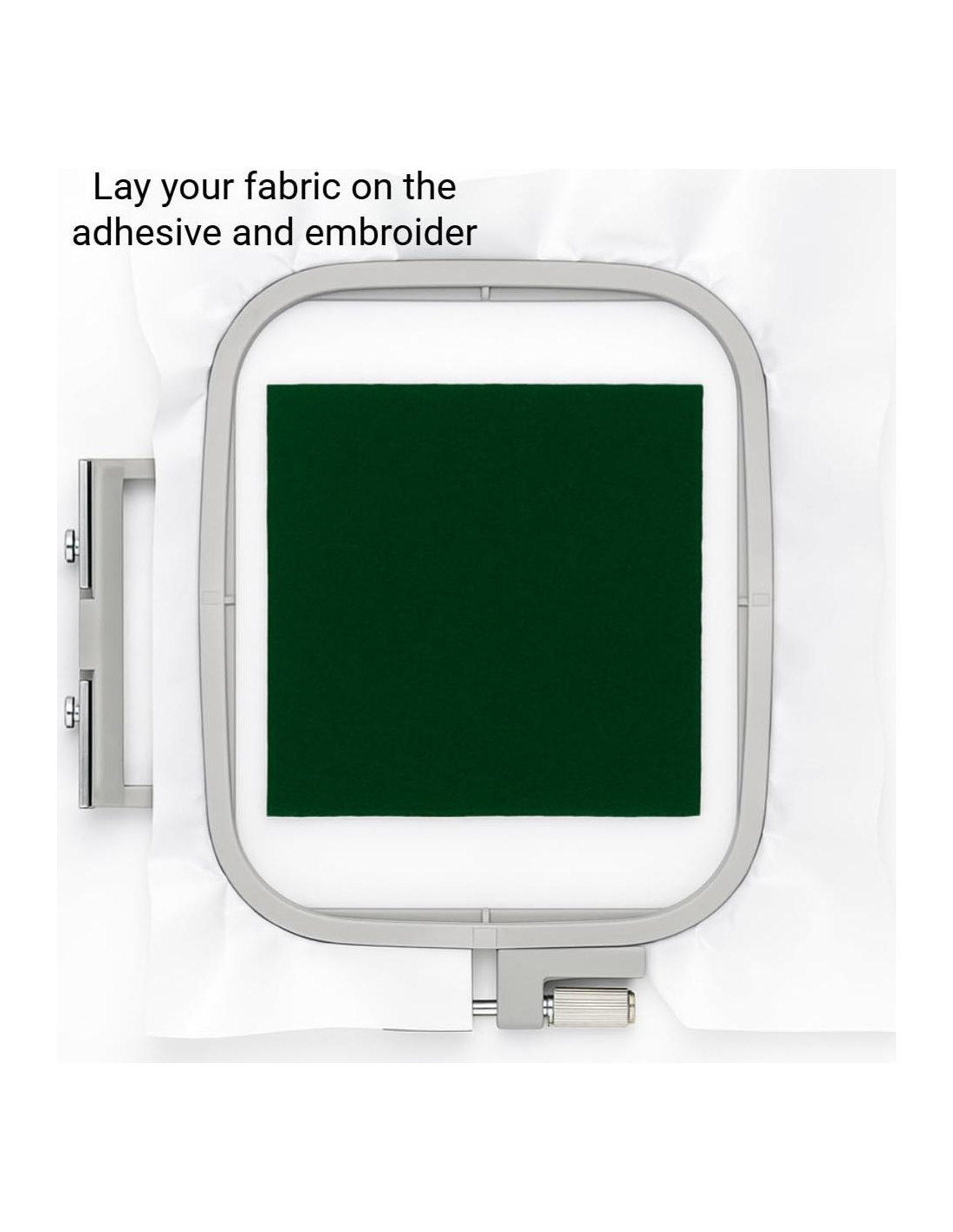 - Un adhesivo especial está formulado específicamente para tolerar la acumulación de calor de la aguja y permitirte mantener tu aguja limpia y prevenir roturas de puntadas. Se quitará fácilmente del artículo bordado después de su uso sin dejar residuos.