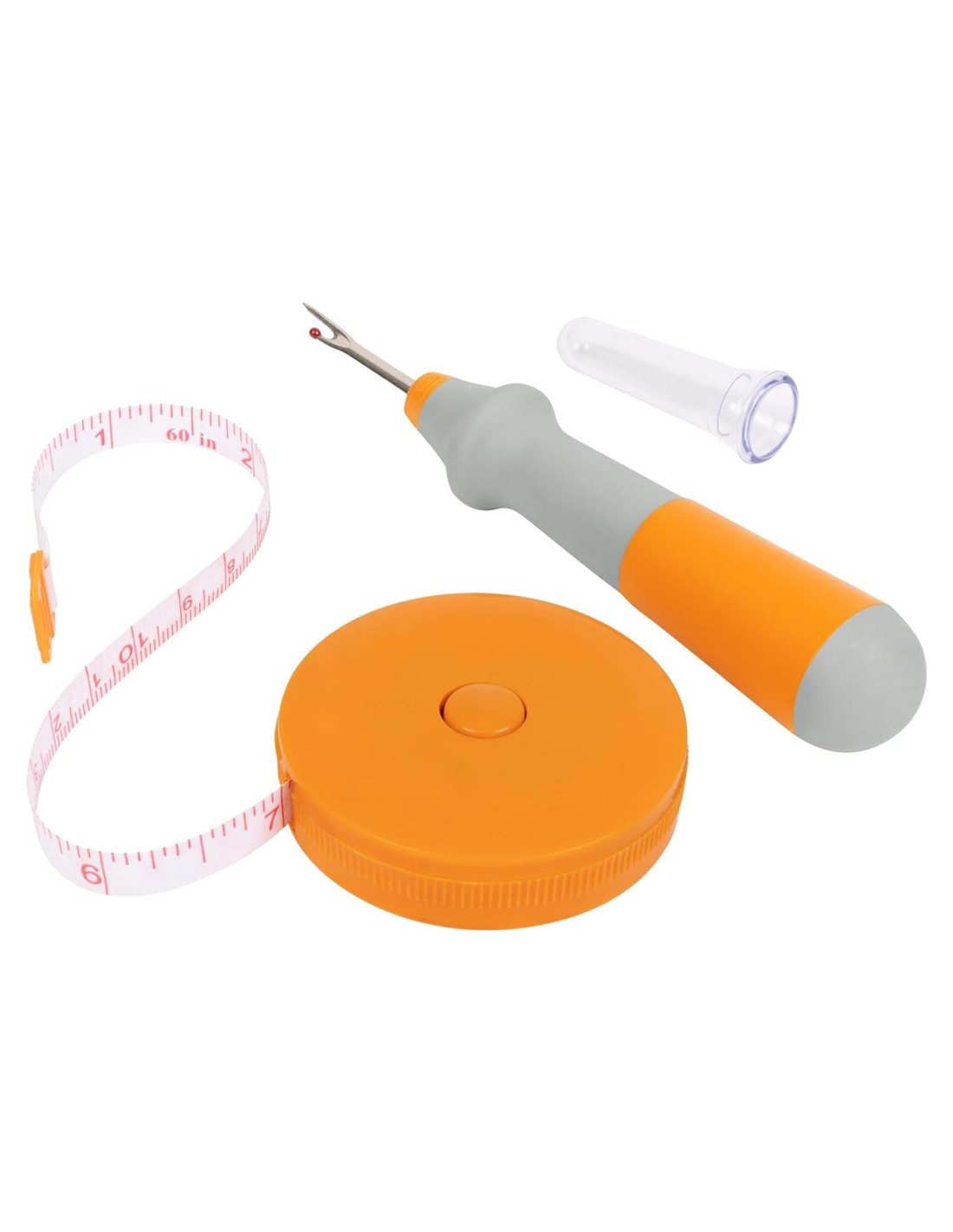 El Juego de Desbarbador y Cinta Métrica Fiskars incluye dos elementos esenciales para accesorios y suministros de costura. El desbarbador elimina rápida y seguramente las líneas de costura, con un mango de forma ergonómica para comodidad y control. La cinta métrica duradera y flexible mide 1.52 m (5 ft) de largo, y tiene un botón de retracción automática para mayor comodidad.