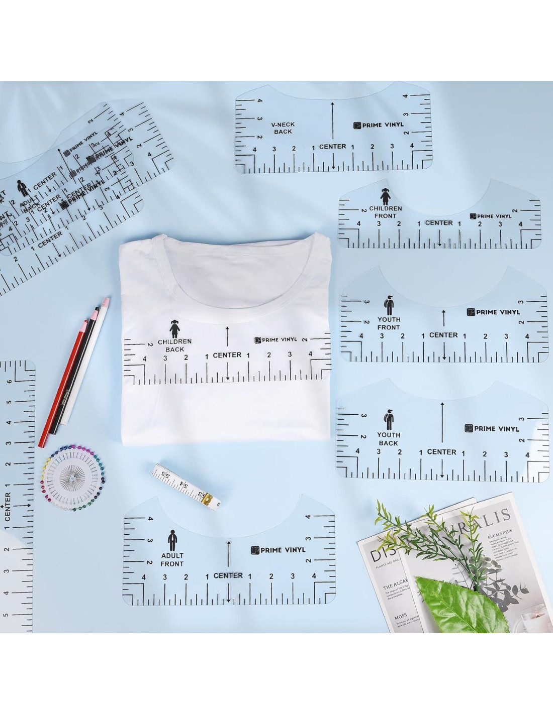 - Uso Versátil: Este kit de regla de alineación para camisetas se puede usar para HTV, sublimación, estampado en caliente, impresión de vinilo y más. Es una gran herramienta para ayudarte con tus proyectos de costura y diseños de camisetas, y también puedes regalarlo a tu mejor amigo o entusiasta de la costura.