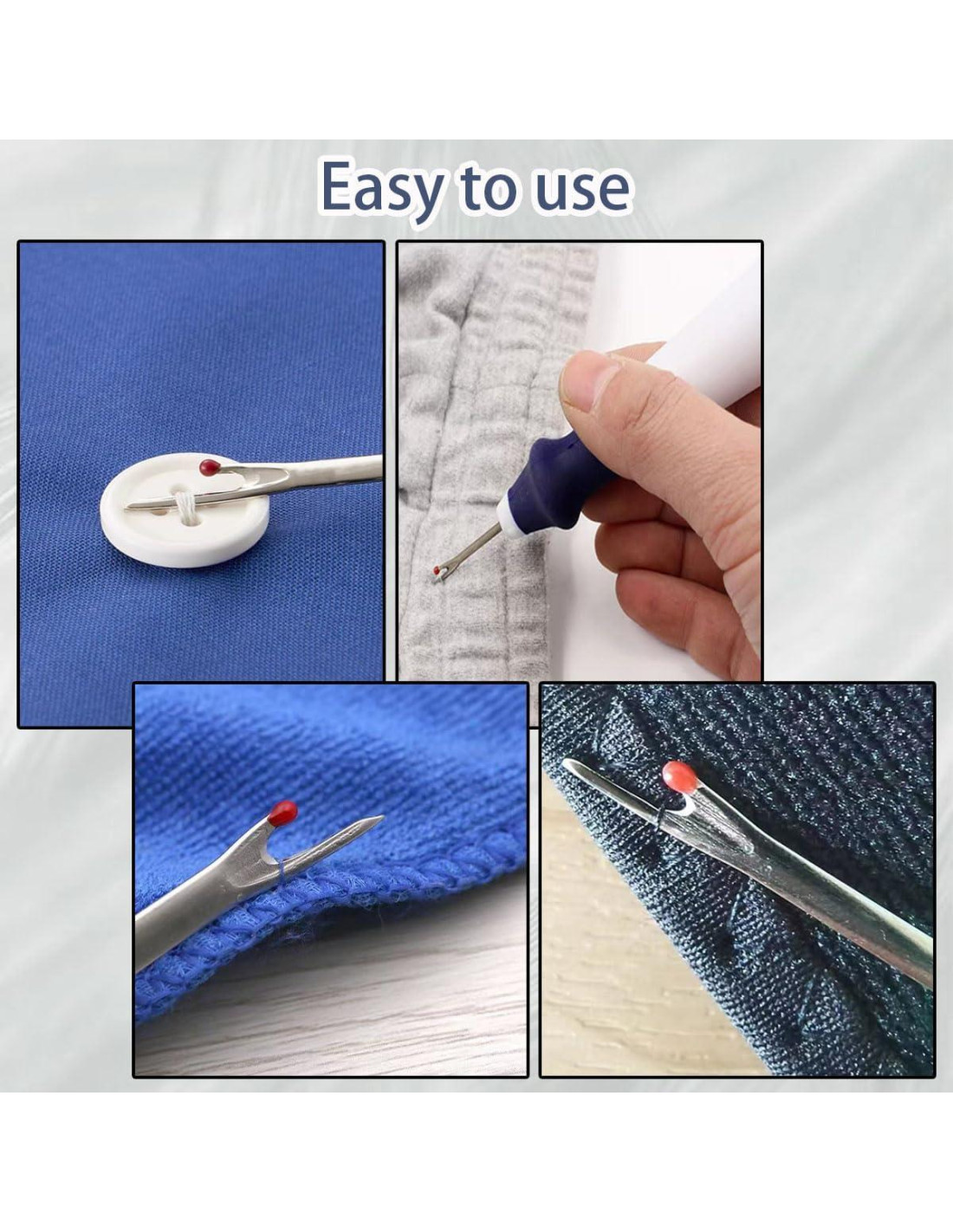 - [Protección de Tela] La herramienta de costura viene con una pequeña bola roja redonda en el extremo de la horquilla más pequeña para proteger tu tela; además, funciona bien para cortar y desgarrar costuras y puntadas no deseadas sin dañar tu tela.