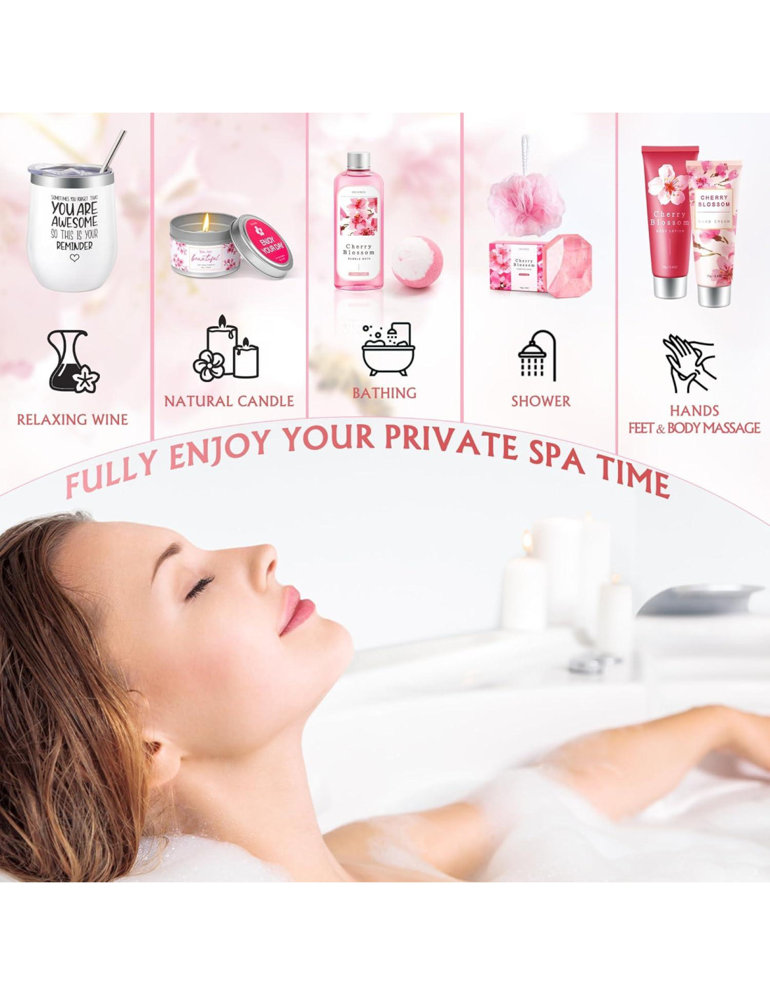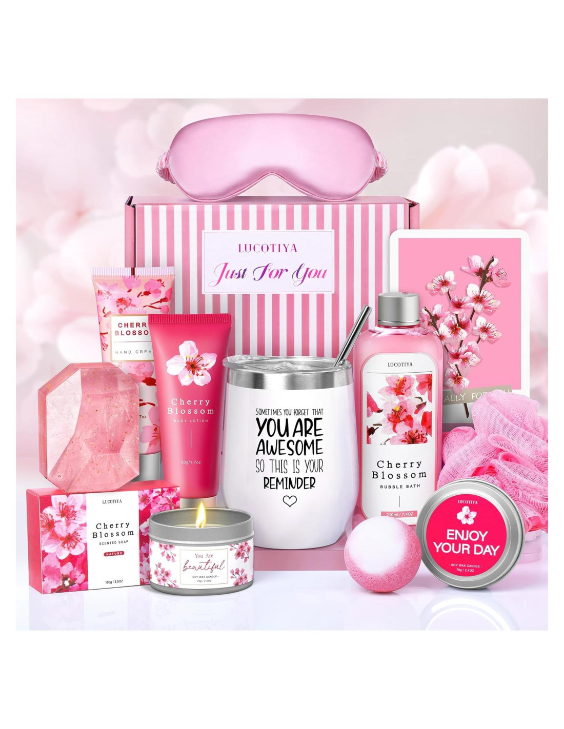 - Set de Regalos Hechos de Forma Natural: Todo en esta canasta de regalos está hecho de ingredientes de alta calidad y naturales. Cada uno de ellos está infusionado con aceite esencial de flor de cerezo japonés que es rico en antioxidantes y repara las barreras naturales de la piel, ayudando a que esté suave y perfumada