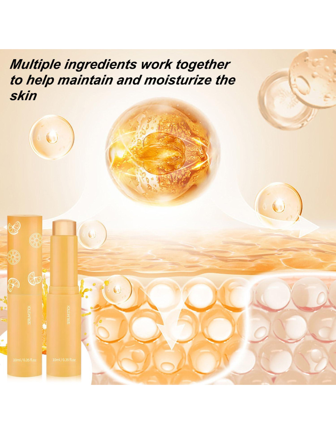 - Fórmula de Vitamina C: Enriquecido con una potente dosis de vitamina C, este stick de suero combate la opacidad y las manchas oscuras, perfecto para la cara y el cuerpo