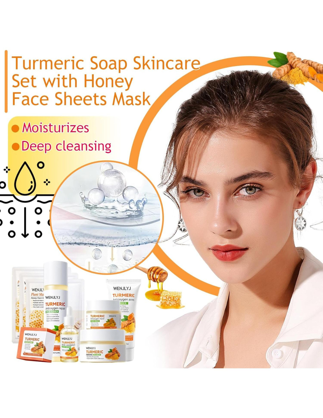 - [Regalo Perfecto] El juego de cuidado de piel con cúrcuma y la mascarilla facial de miel son de gran valor, ya sea que los compres para ti o como un regalo para las fiestas, el juego de cuidado de piel es una gran elección.